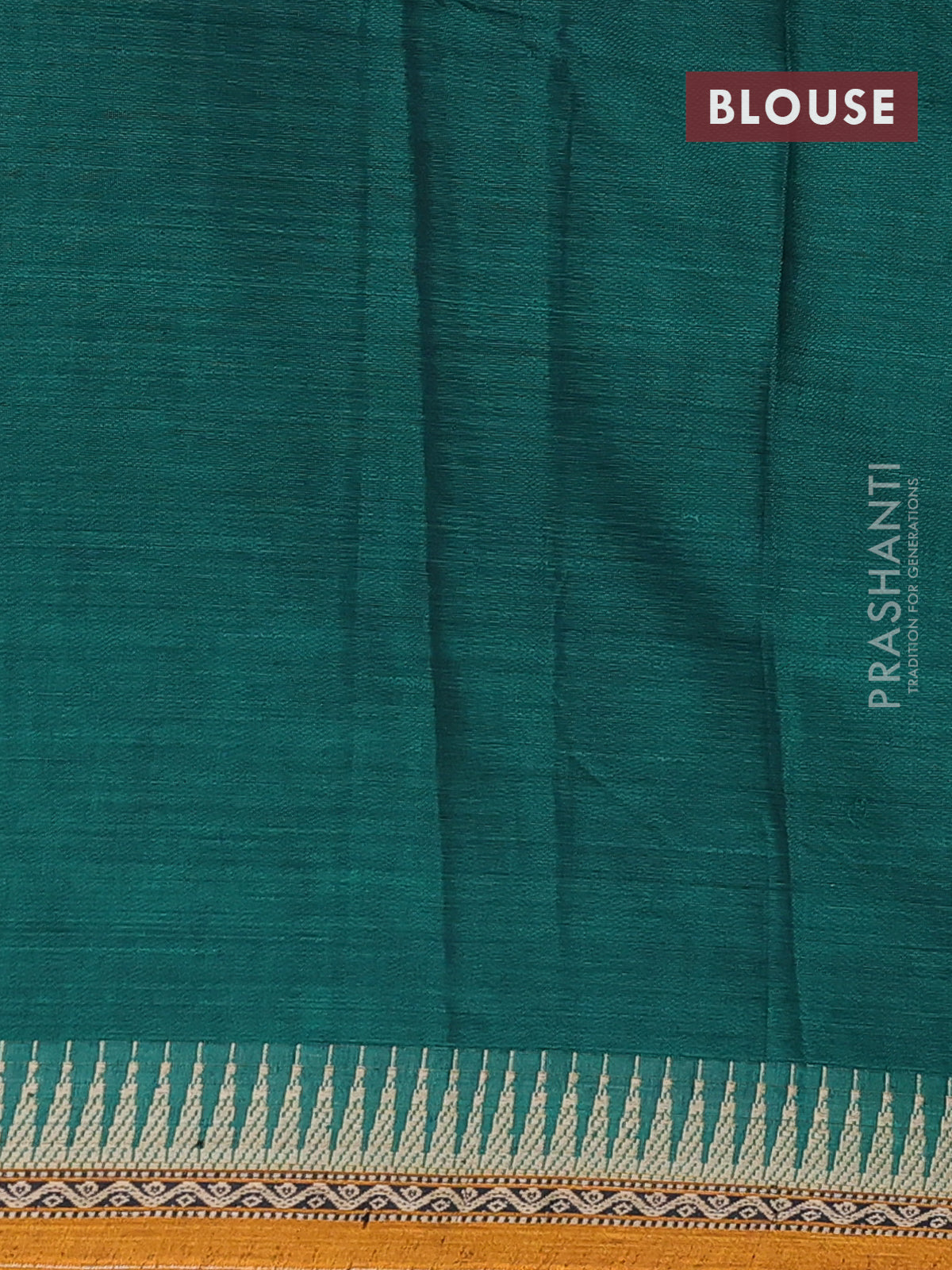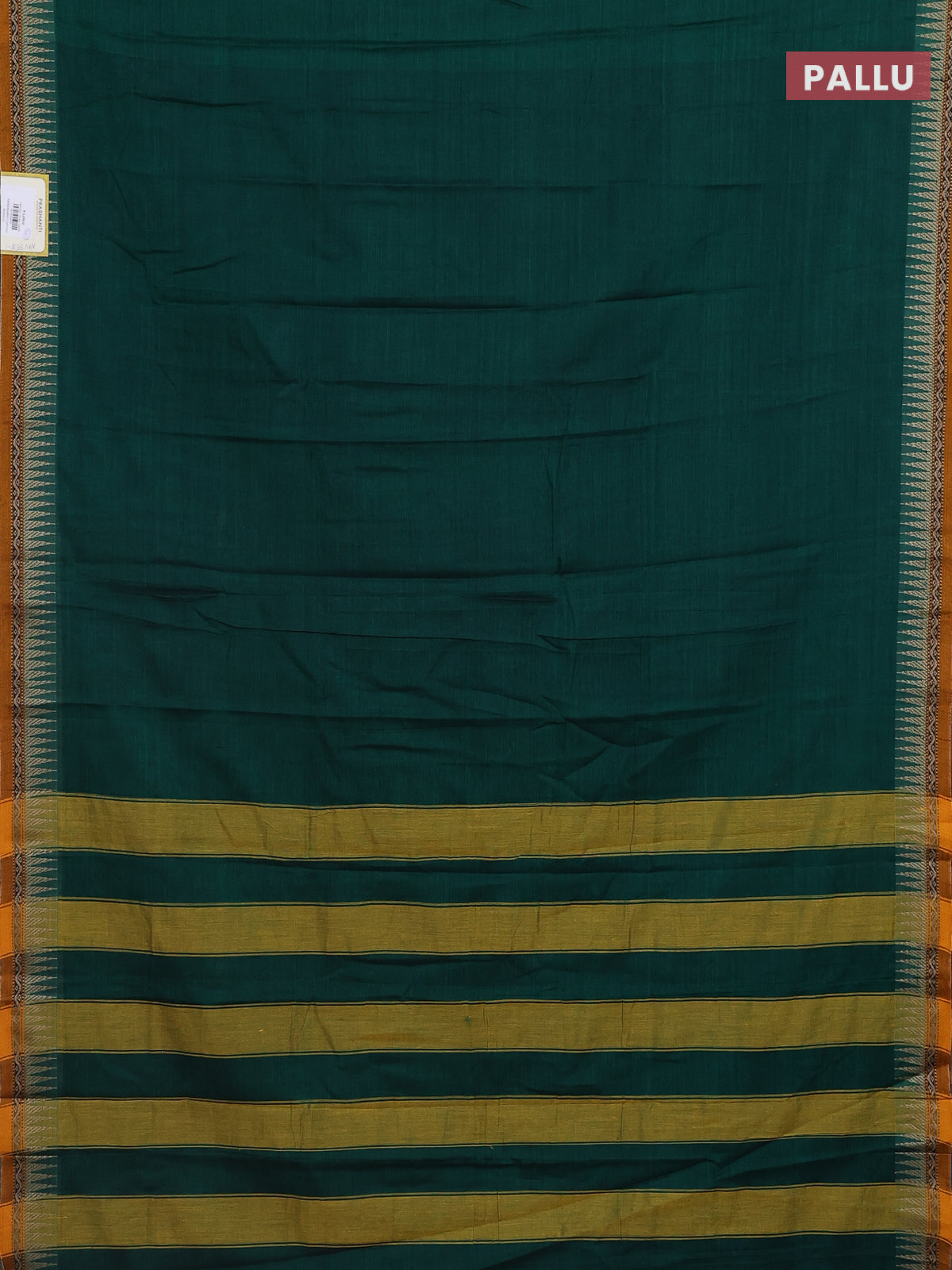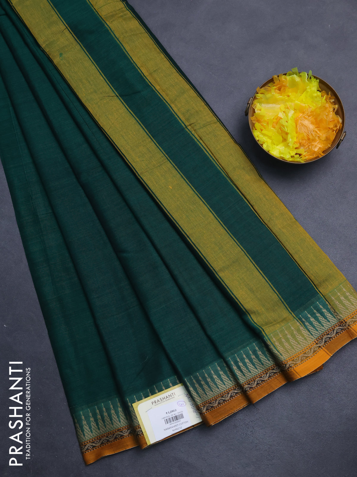 Narayanpet cotton saree green and mustard yellow with plain body and temple design border