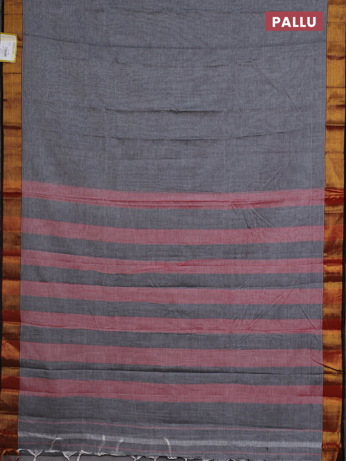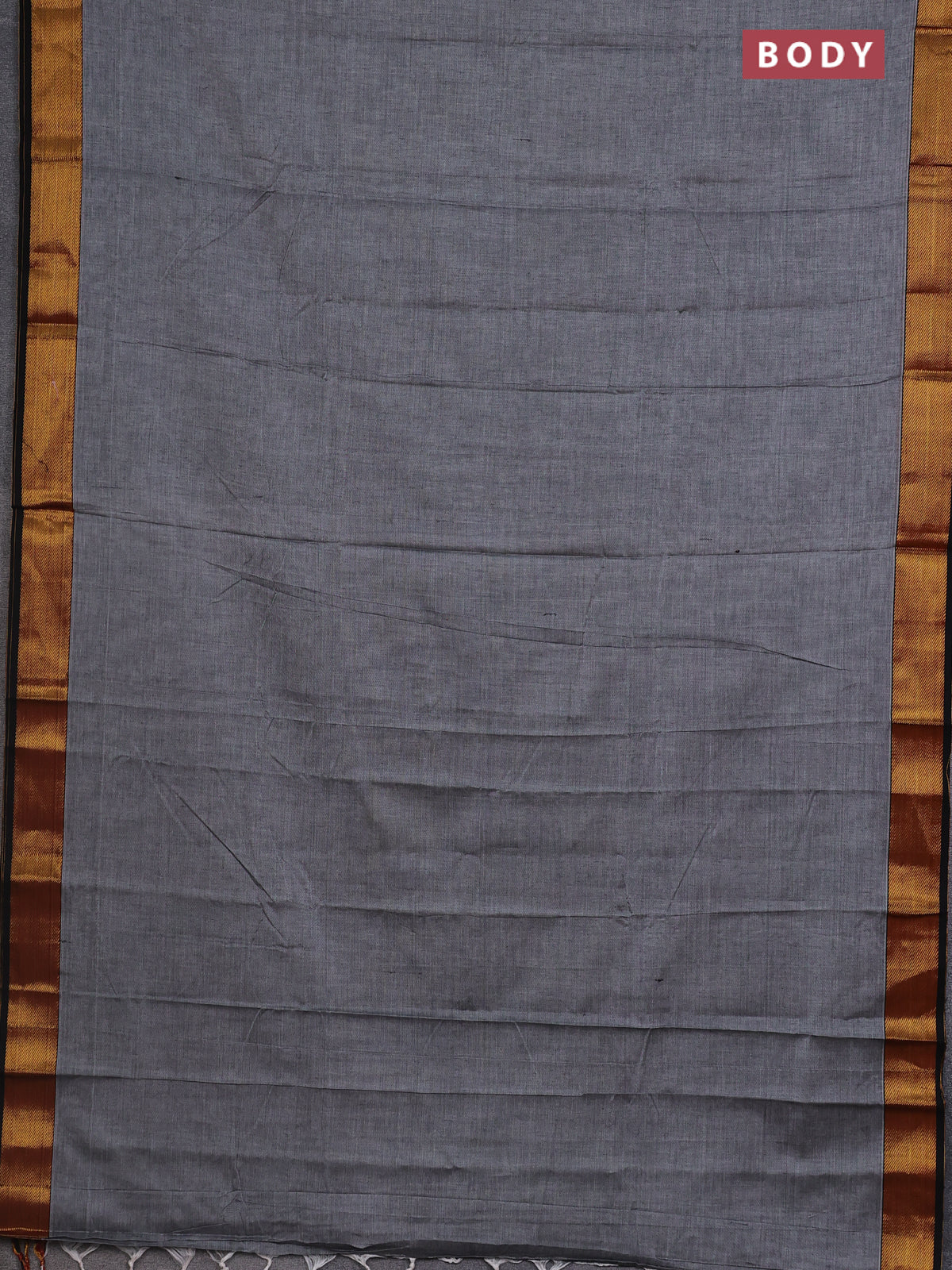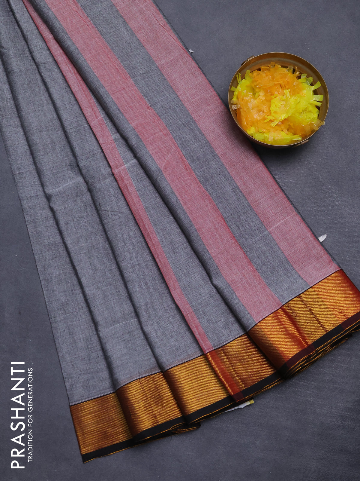 Narayanpet cotton saree grey and black with plain body and zari woven border