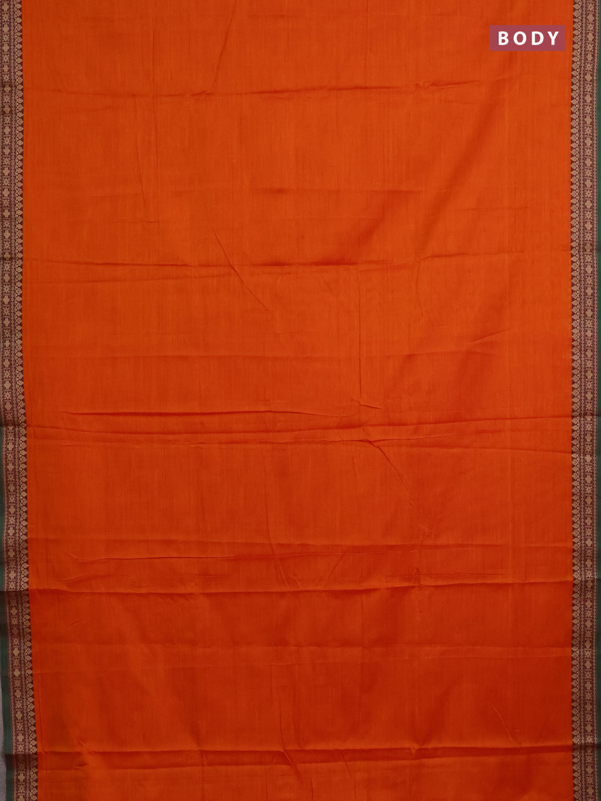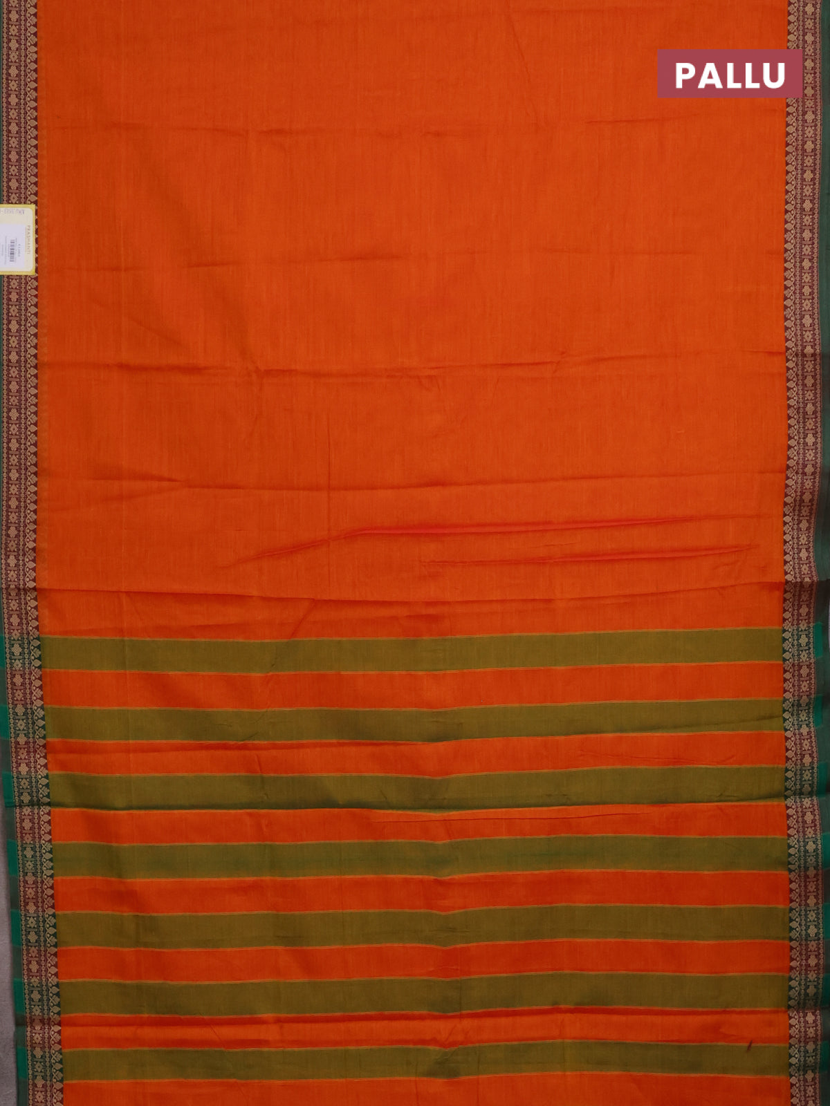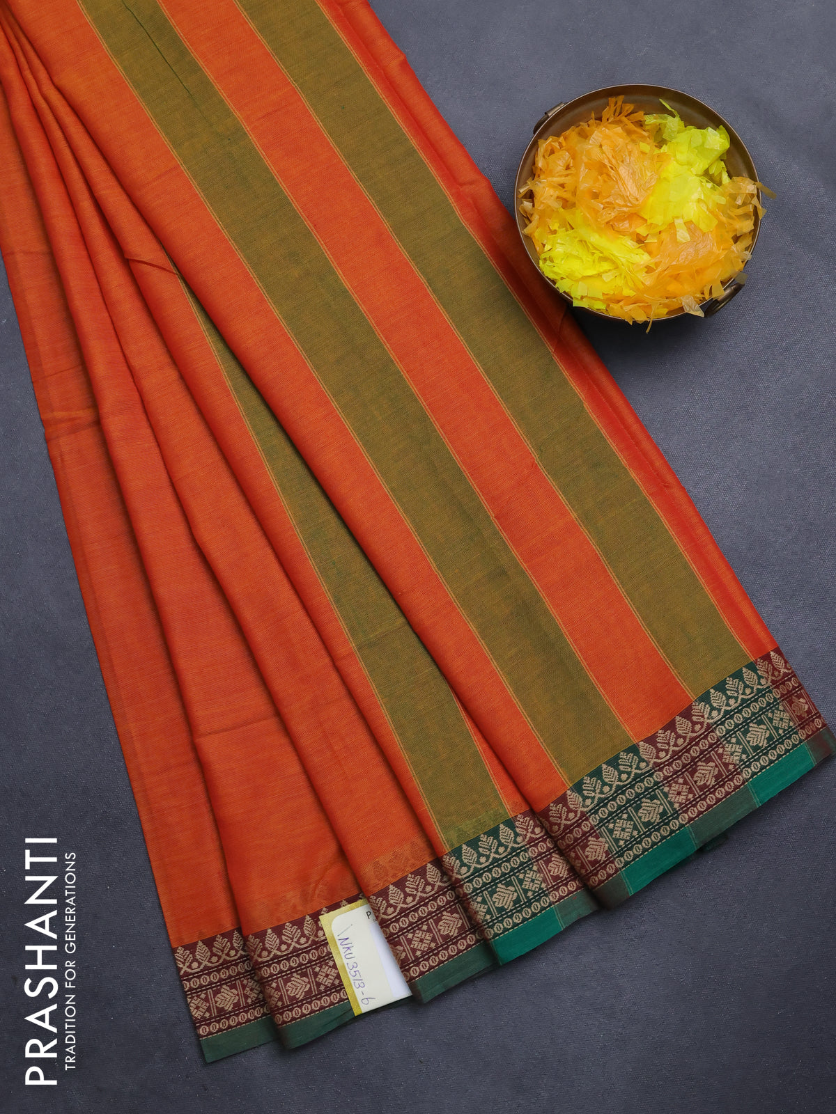Narayanpet cotton saree orange and green with plain body and thread woven border