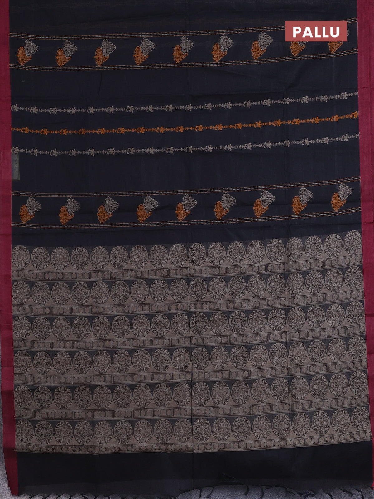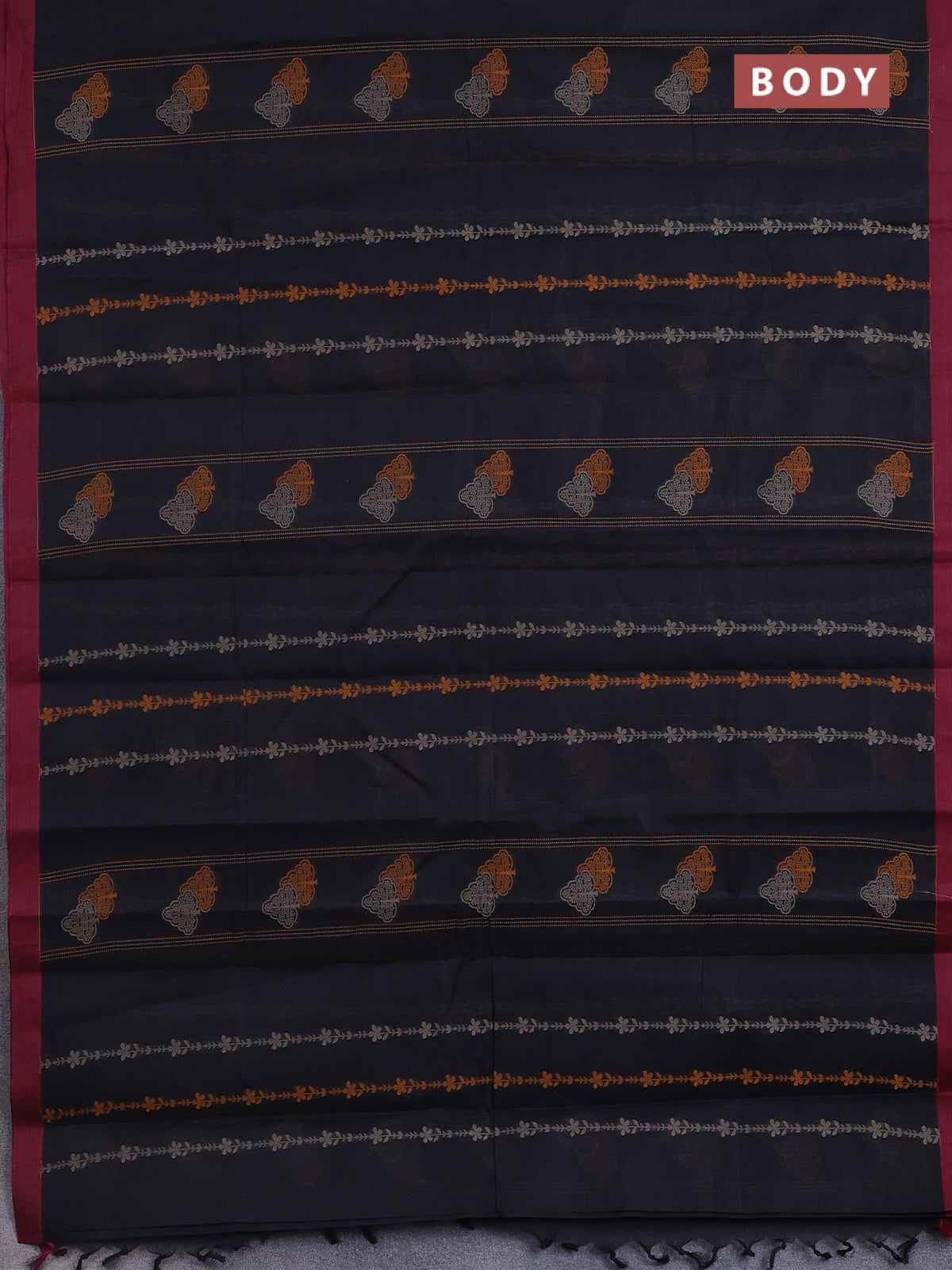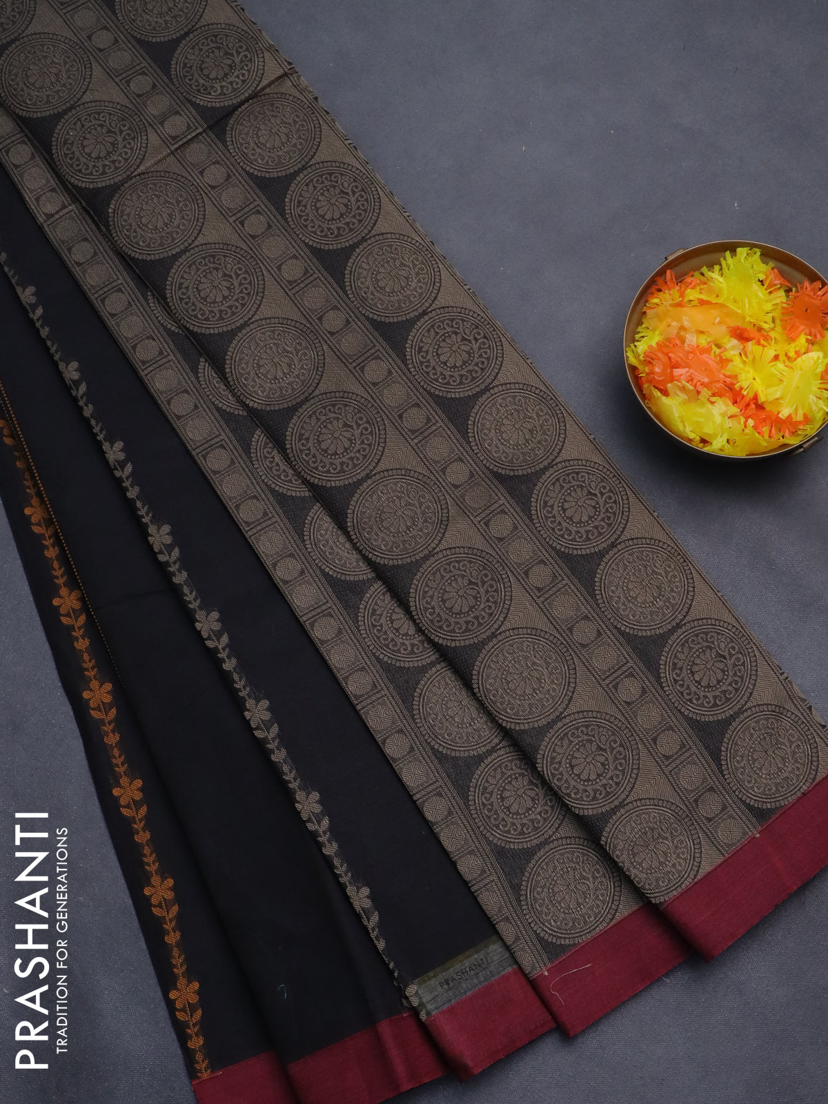 Nithyam cotton saree black and maroon with allover thread weaves and simple border
