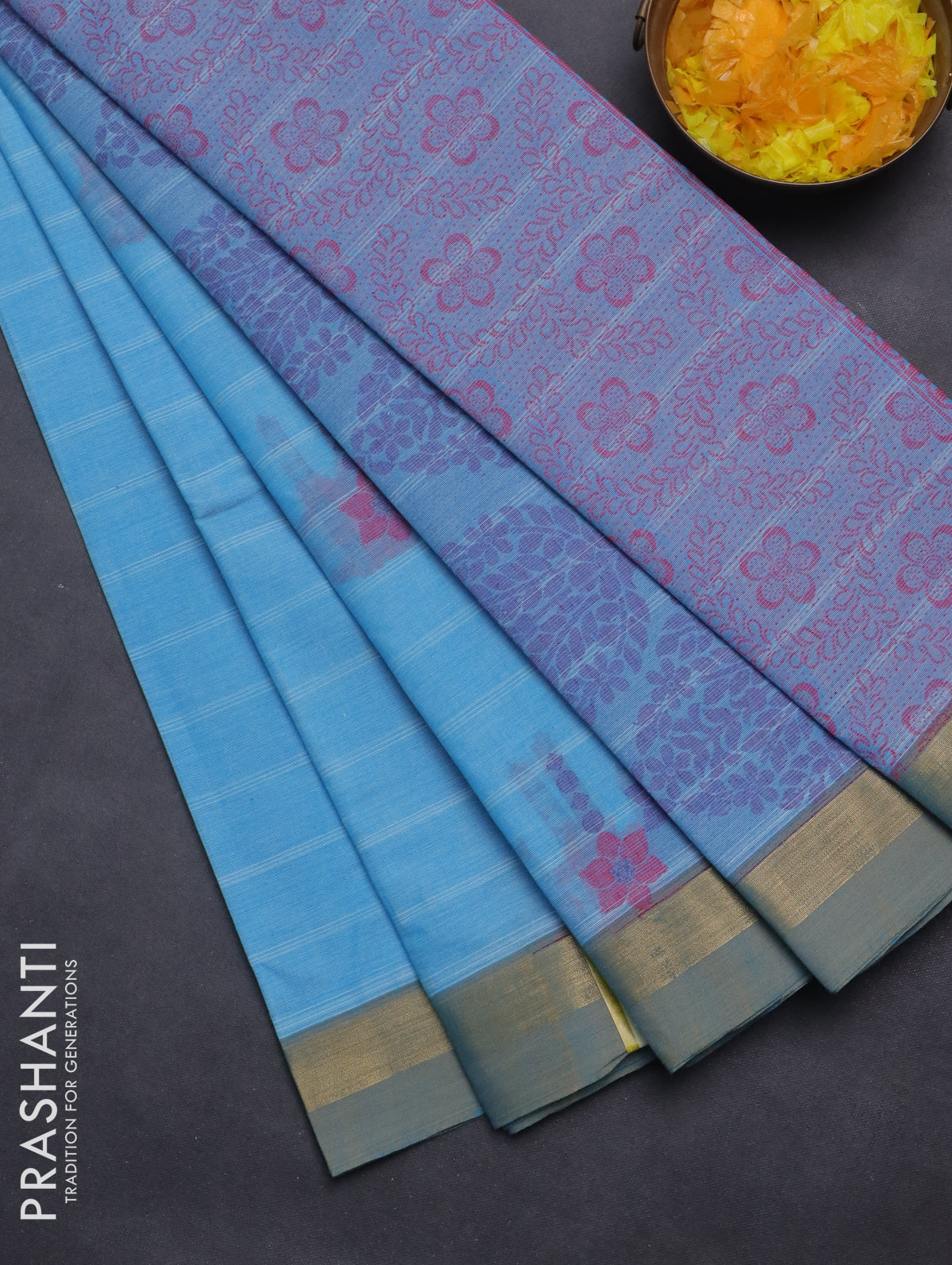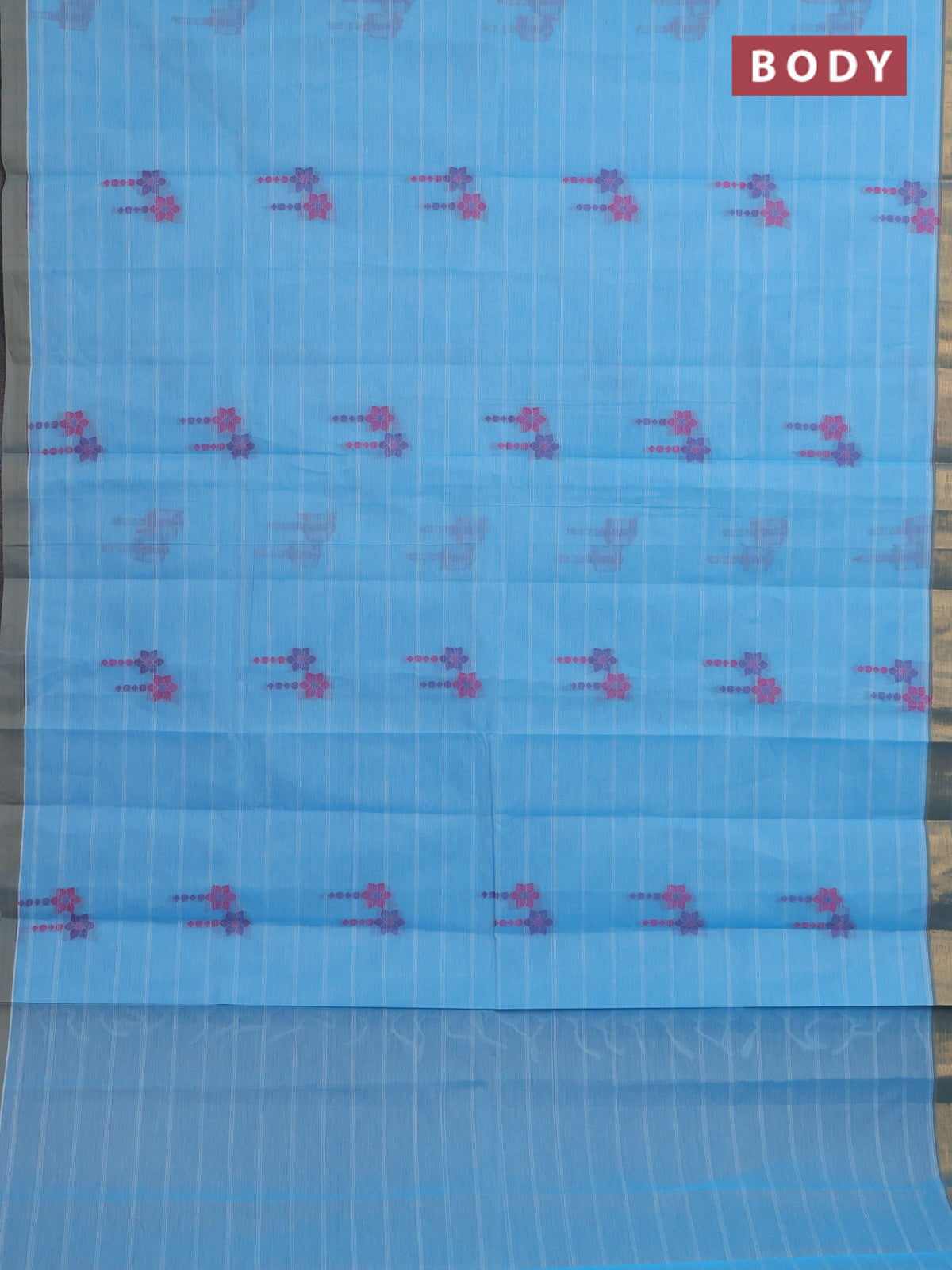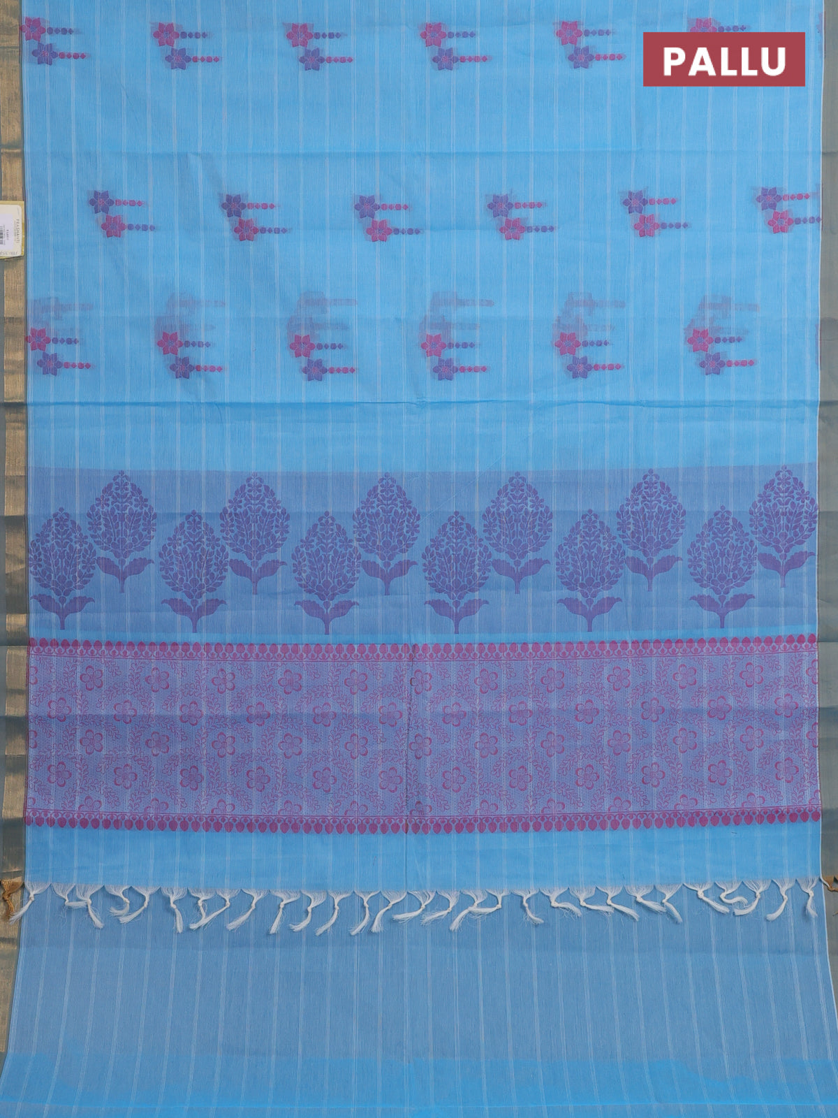 Nithyam cotton saree cs blue with thread woven buttas and zari woven border