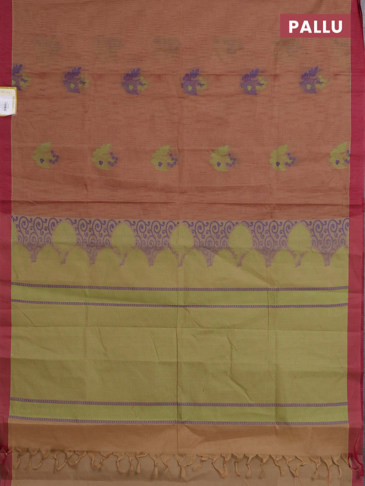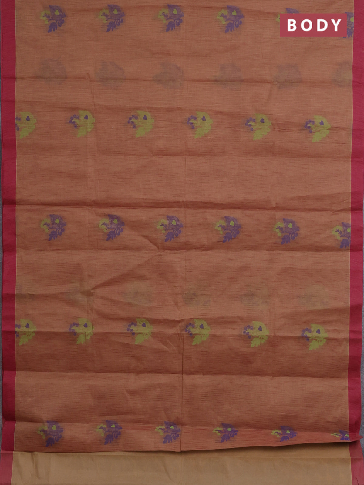 Nithyam cotton saree dark sandal and maroon with thread woven buttas and simple border