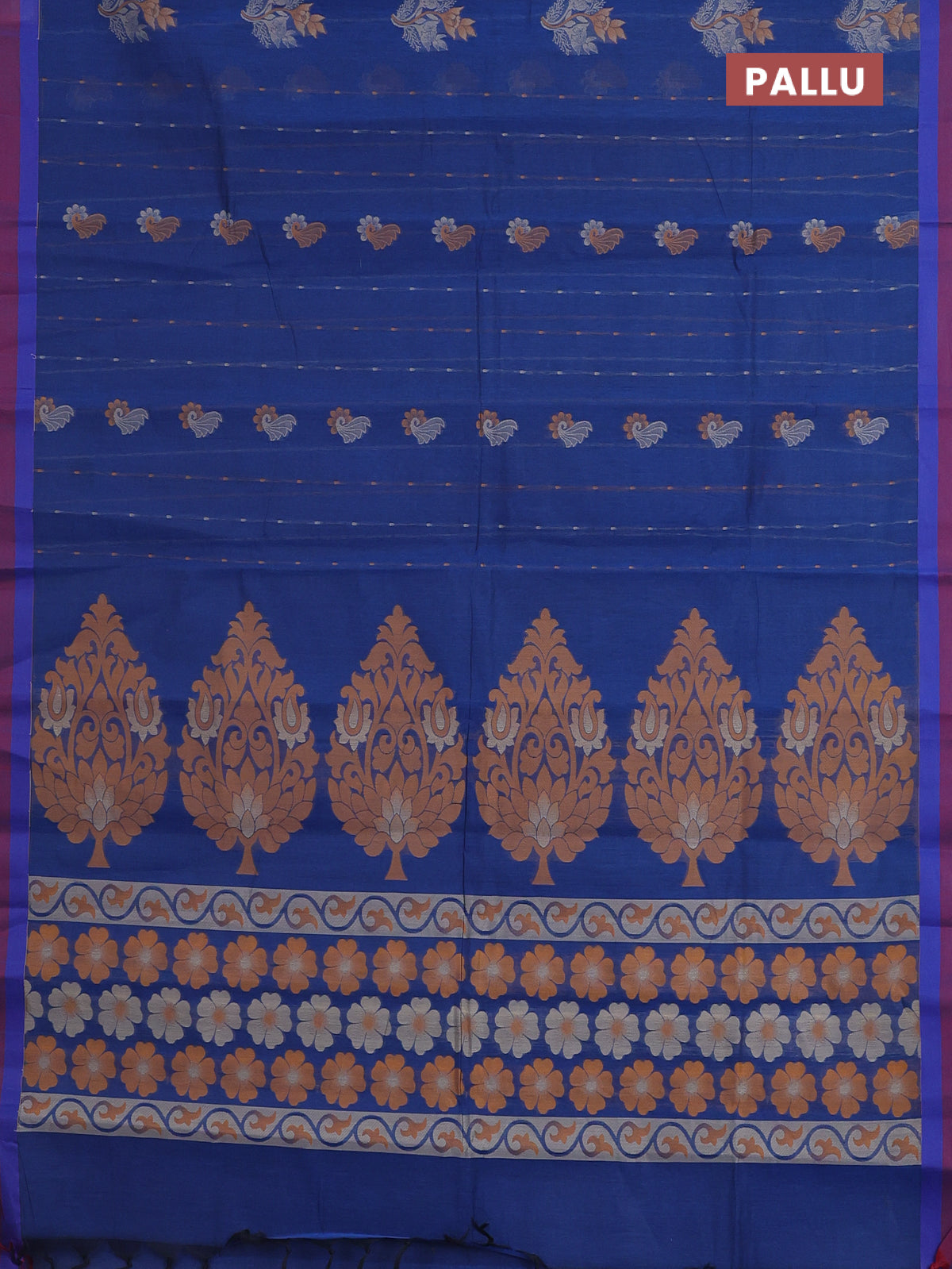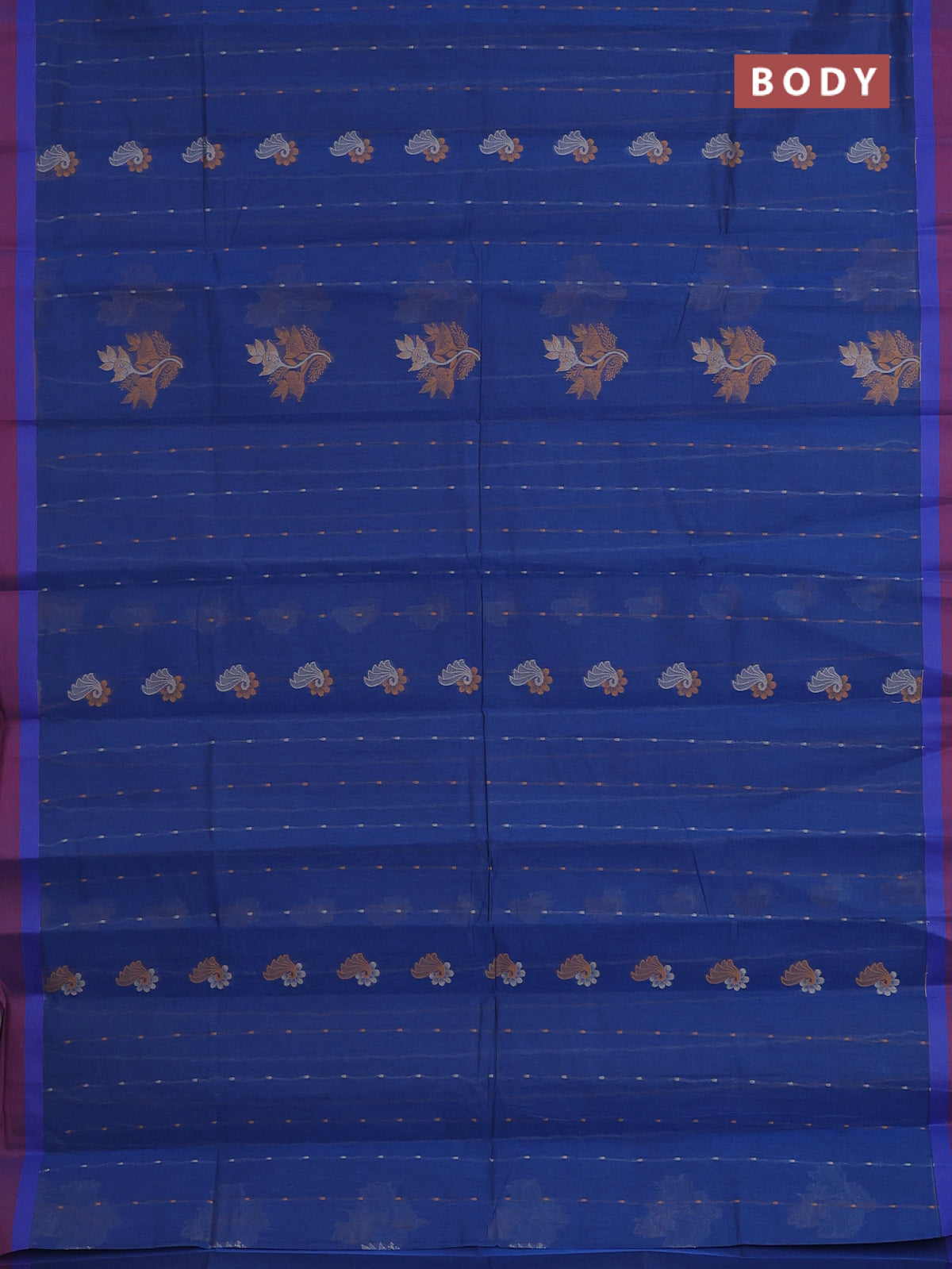 Nithyam cotton saree peacock blue and maroon with thread woven buttas and simple border