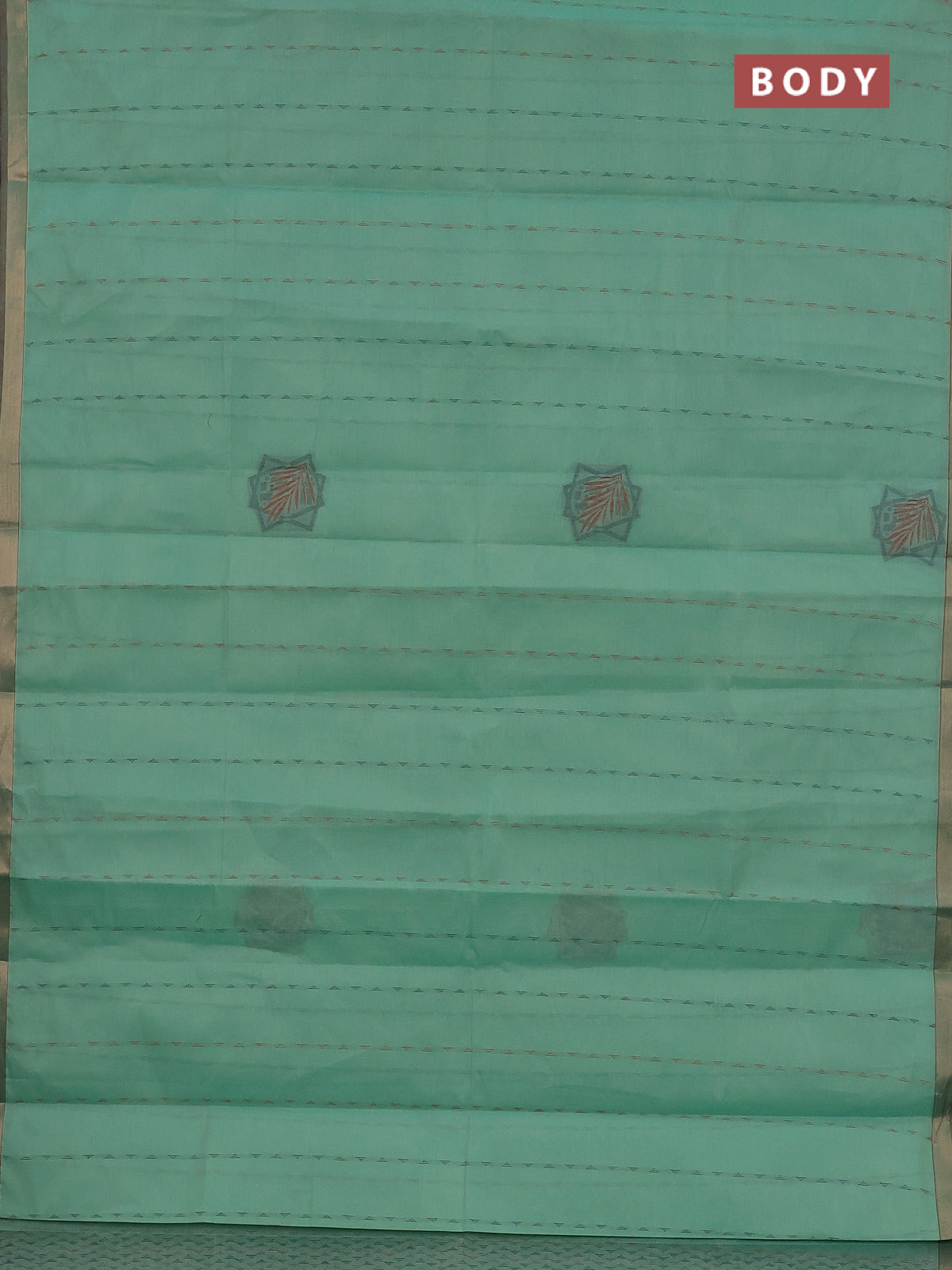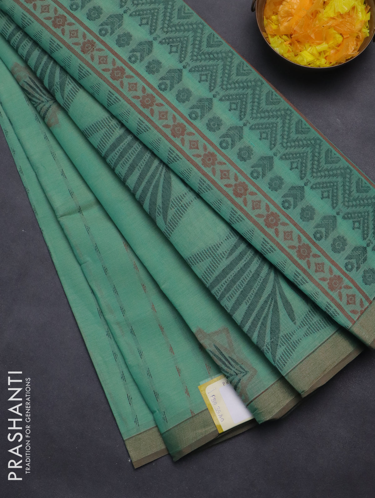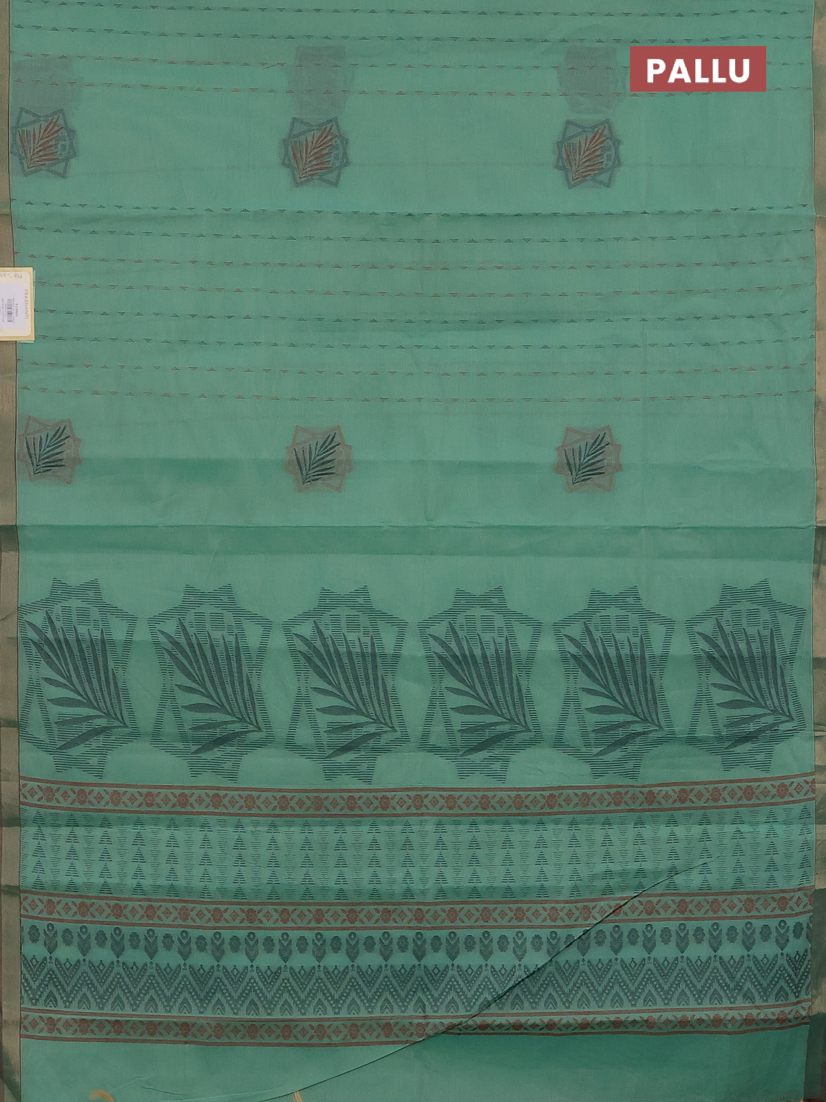 Nithyam cotton saree teal green with allover thread weaves and zari woven border