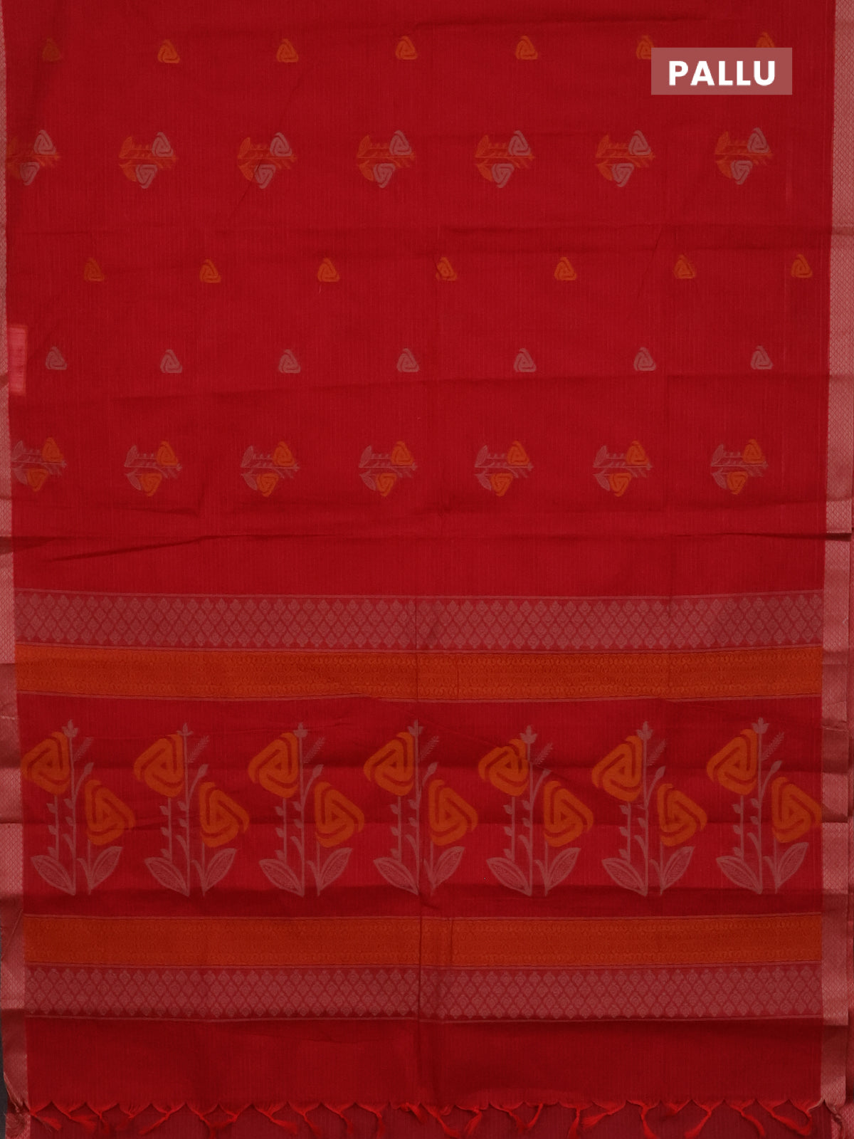 Nithyam cotton saree tomato red with thread woven buttas and thread woven border