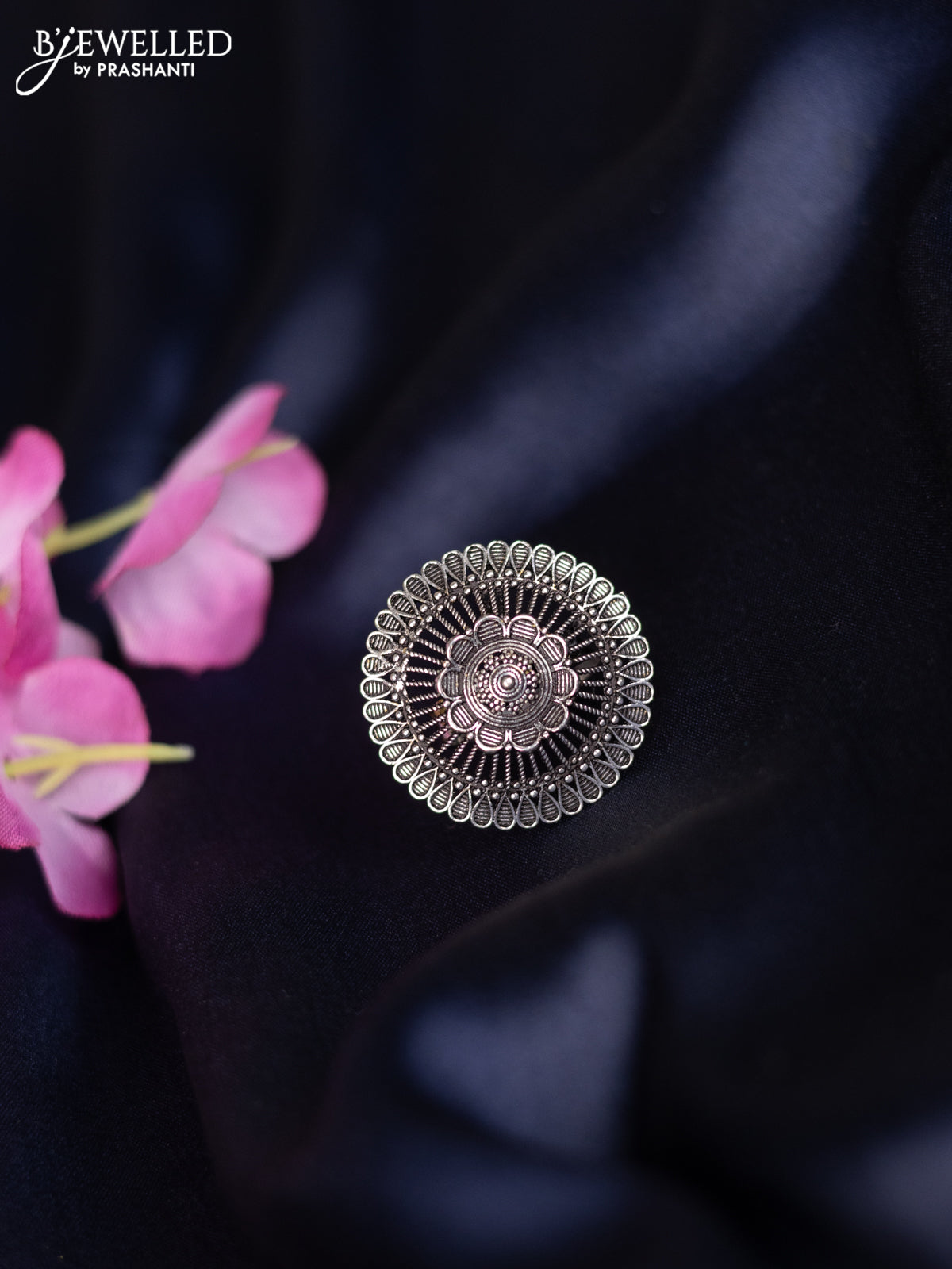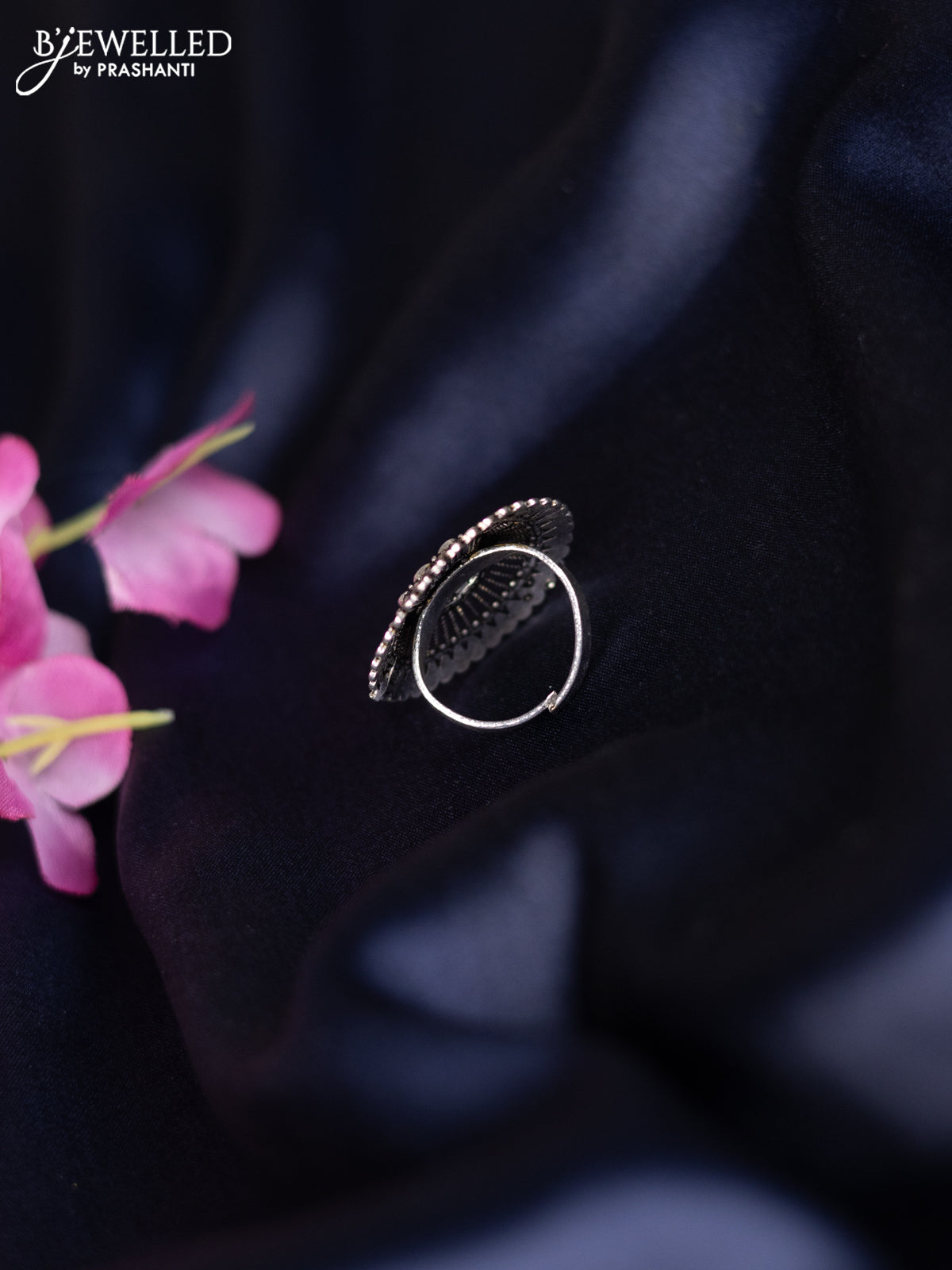 Oxidised ring with floral design