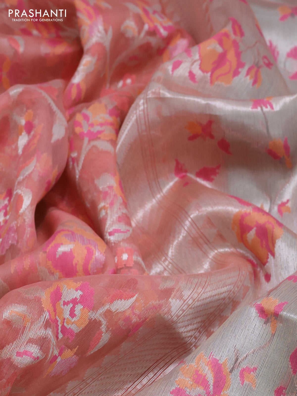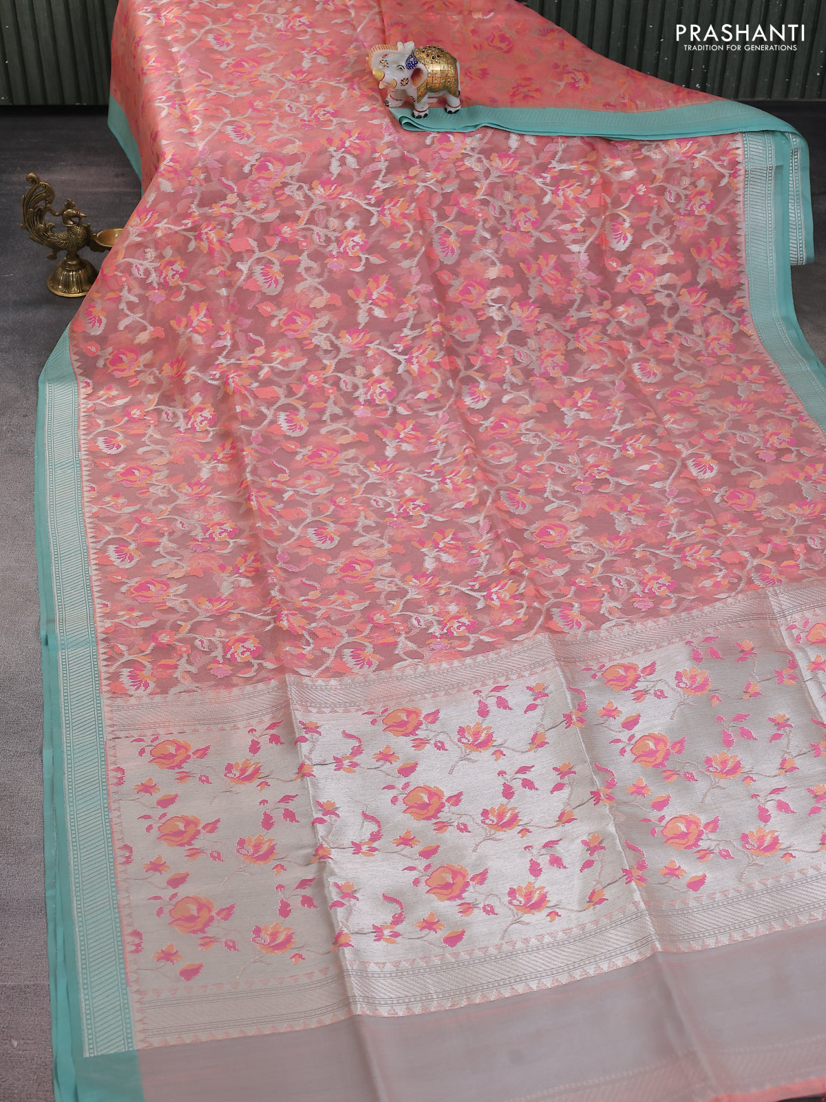 peach orange and teal blue Banarasi kora jamdhani silk saree