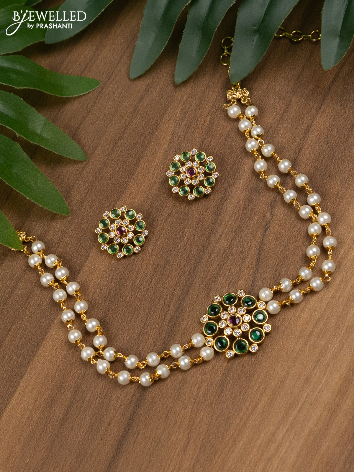 Pearl choker with kemp and cz stones