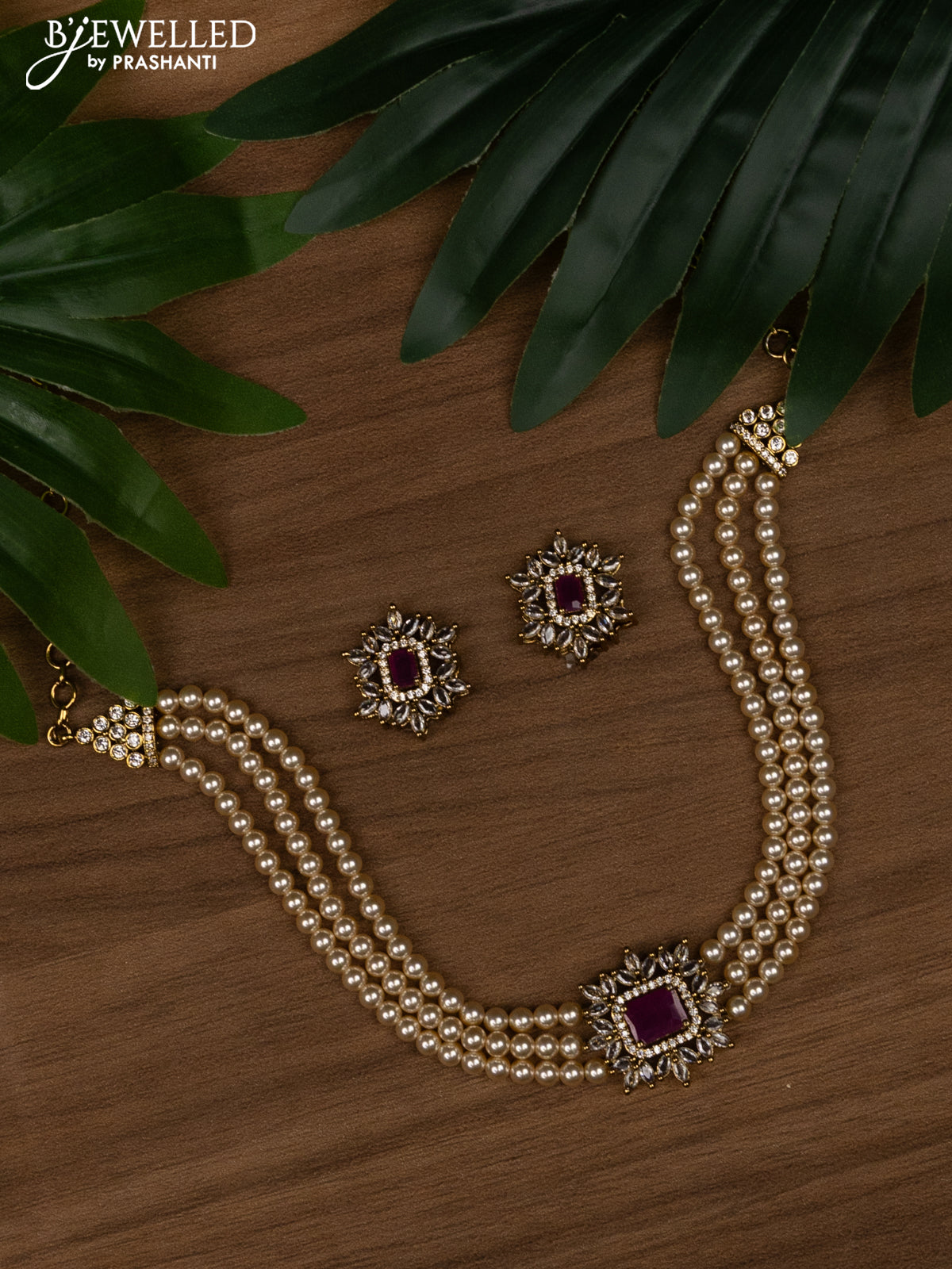 Pearl choker with ruby and cz stones