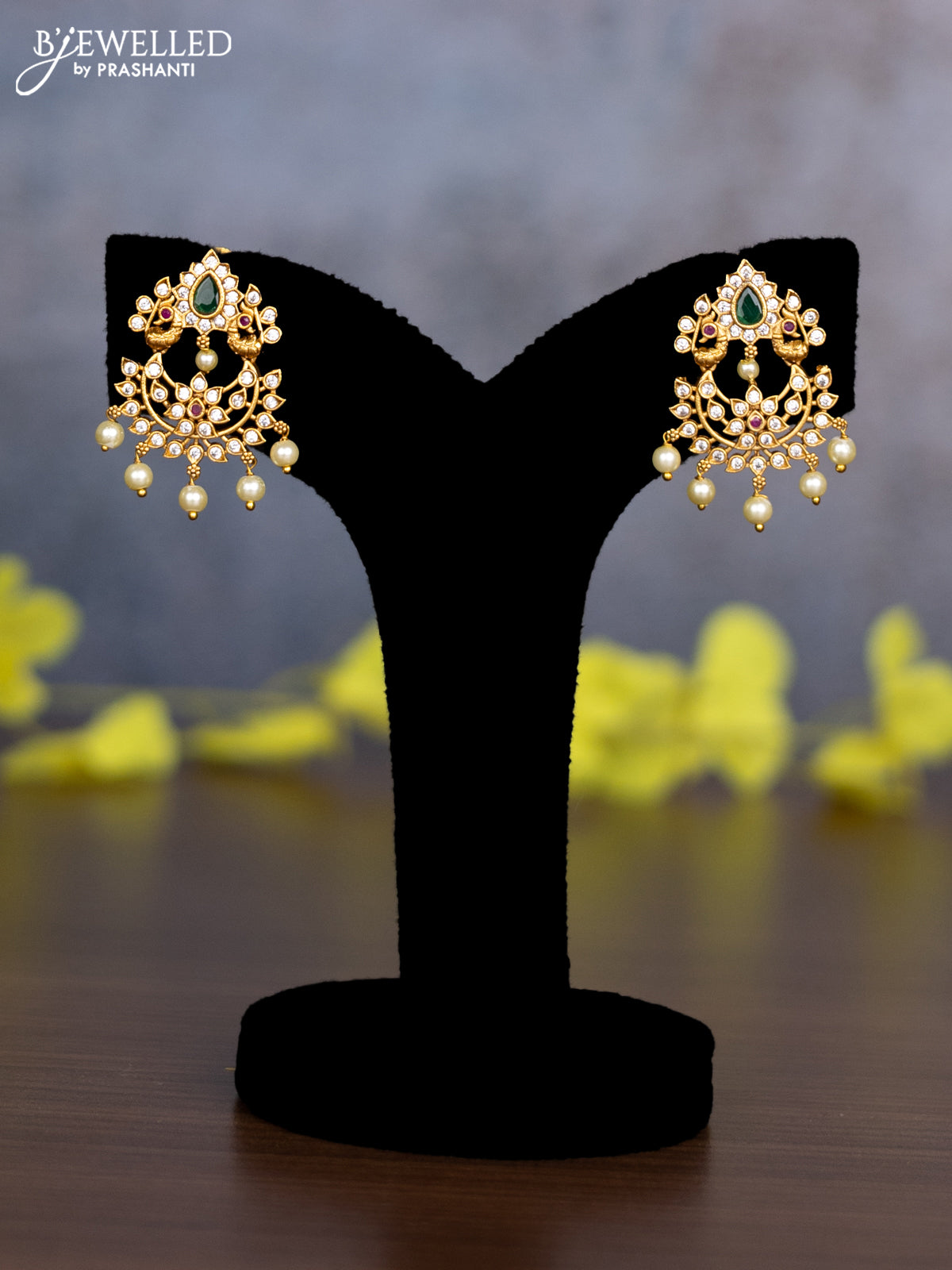 Pearl haaram peacock design with kemp & cz stones and pearl hangings