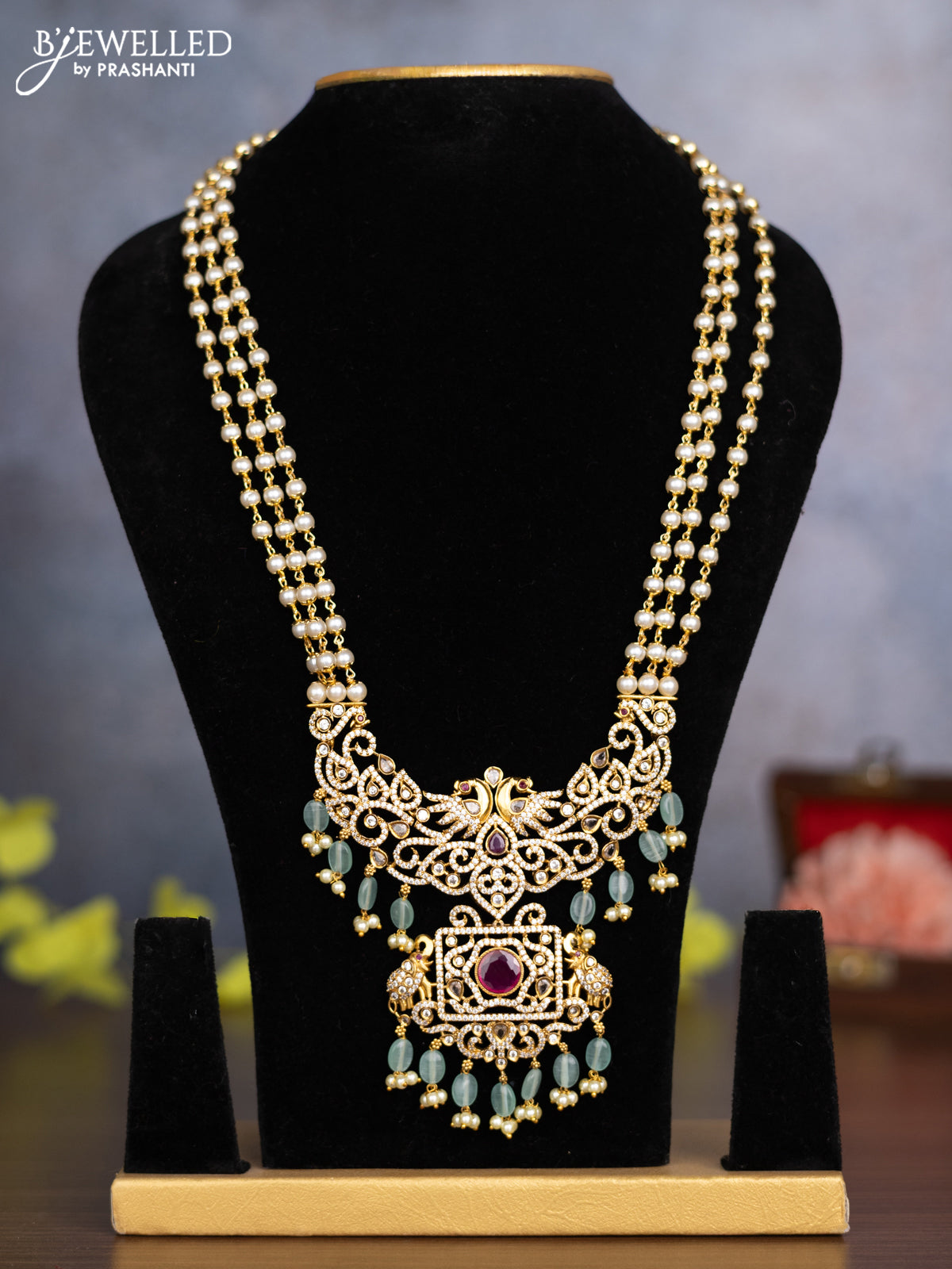 Pearl haaram peacock & elephant design with ruby & cz stones and pearl & beads hanging without earrings