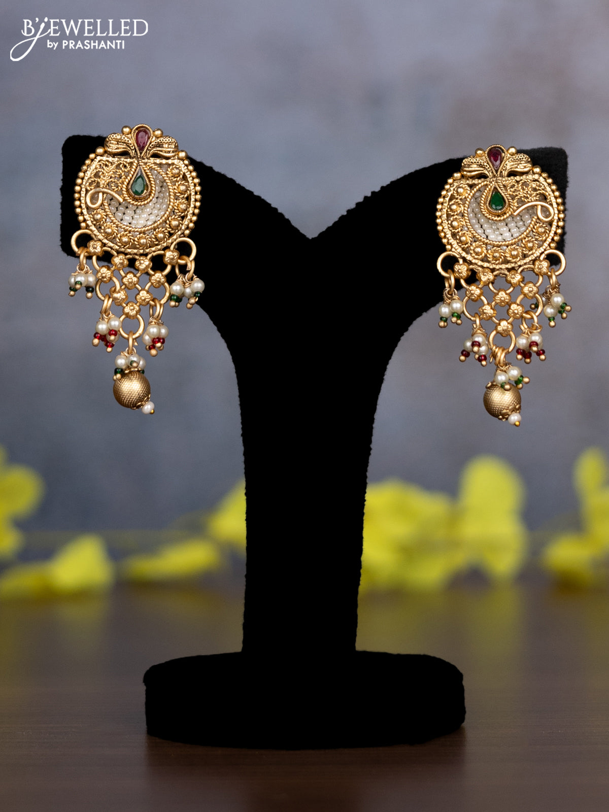 Pearl necklace floral design with kemp & kundan stones and pearl & golden beads hanging