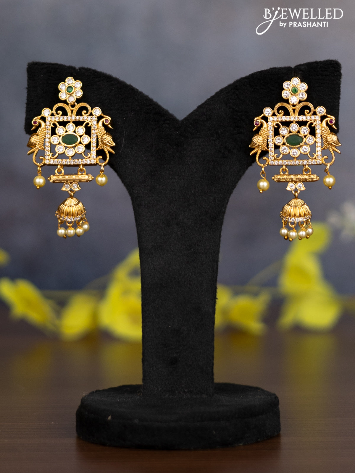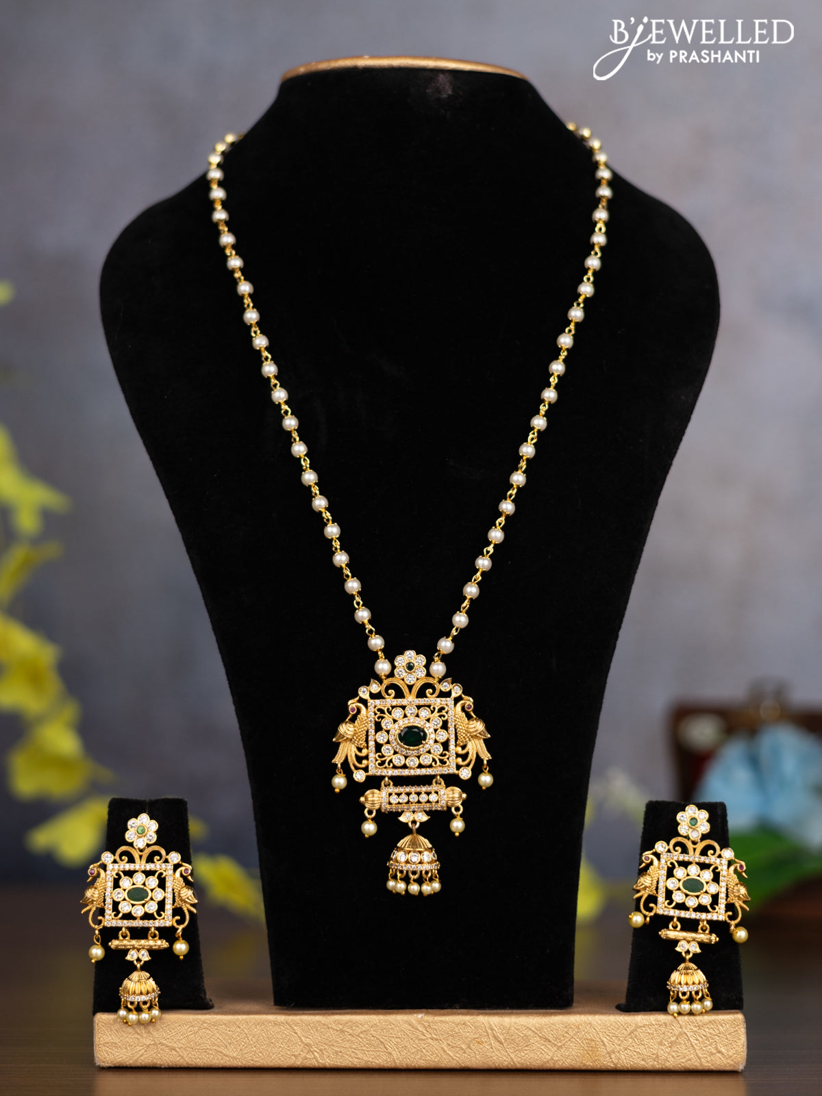 Pearl necklace peacock design with kemp & cz stones and pearl hangings