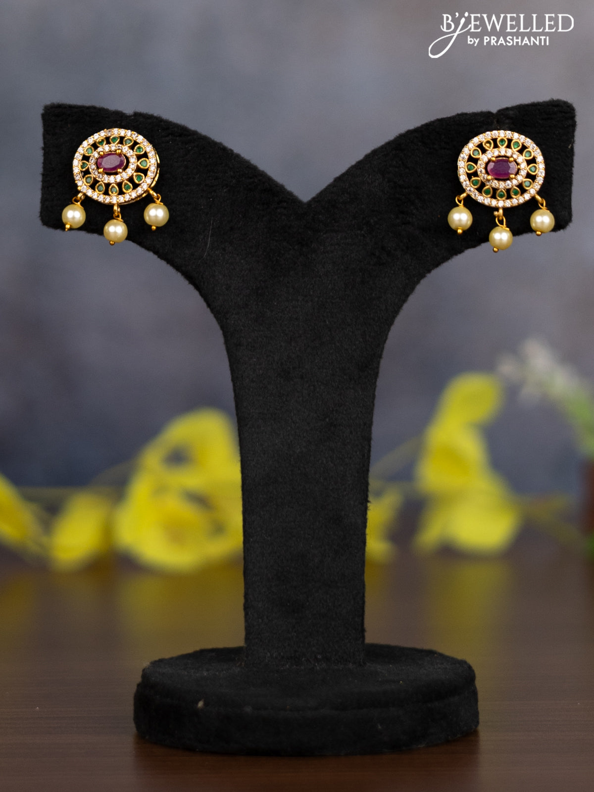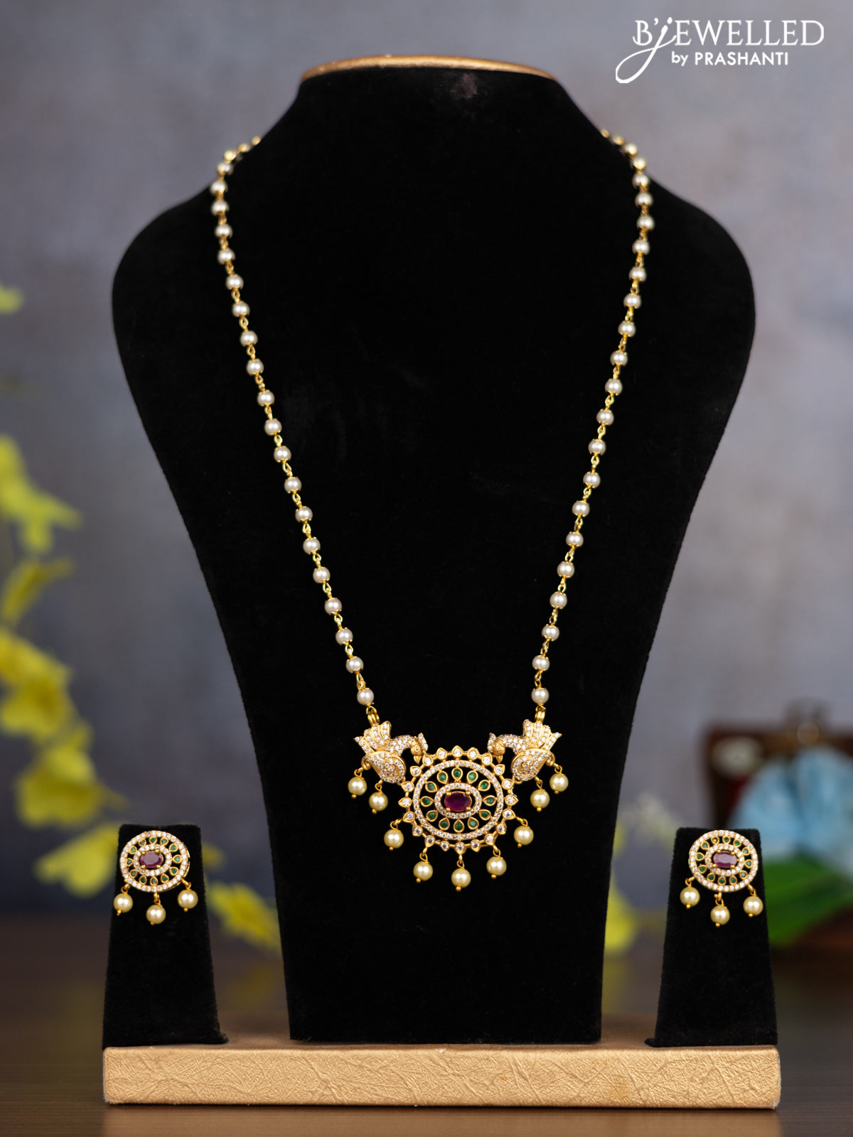 Pearl necklace peacock design with kemp & cz stones and pearl hangings