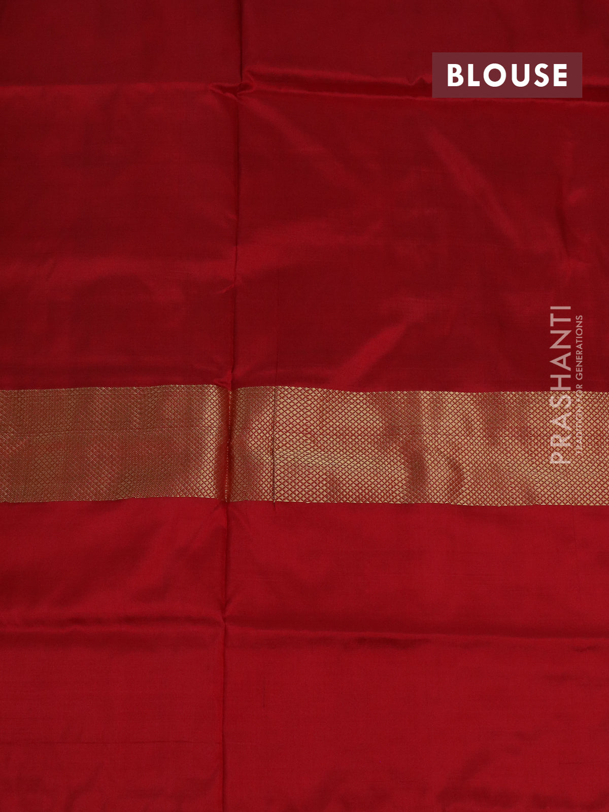 Pochampally silk saree blue and red with zig zag weaves and zari woven simple border