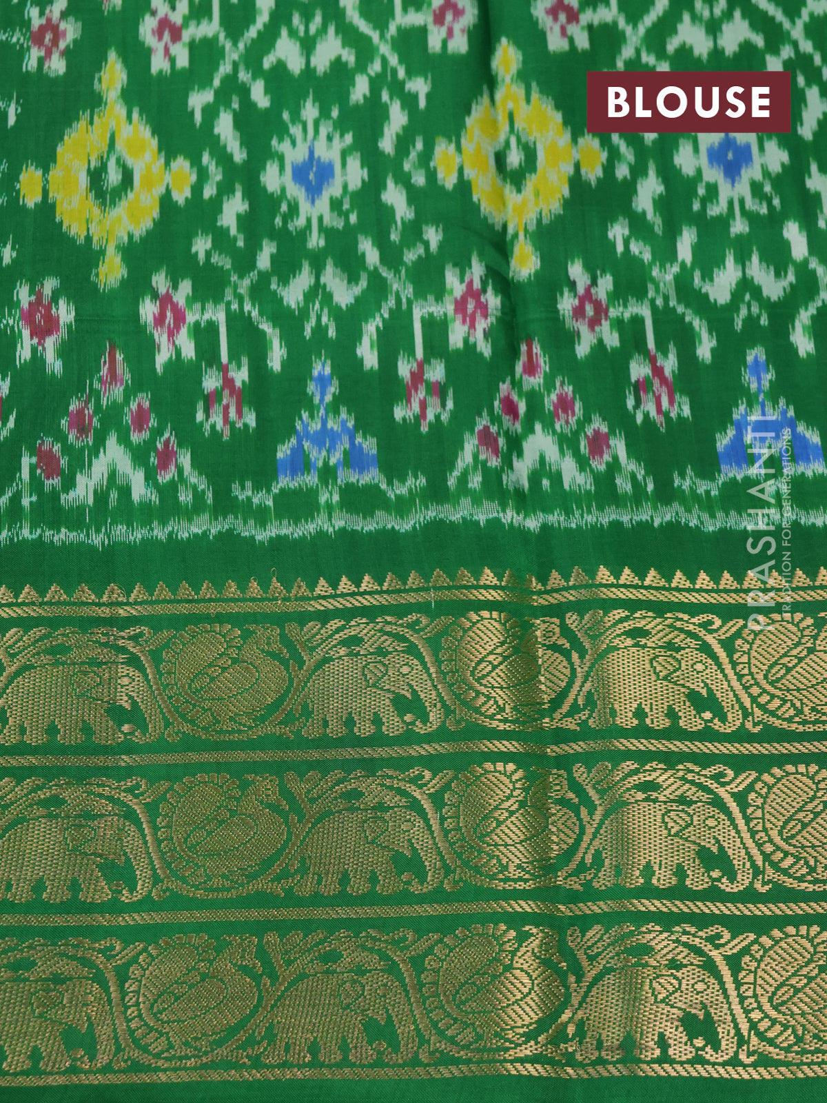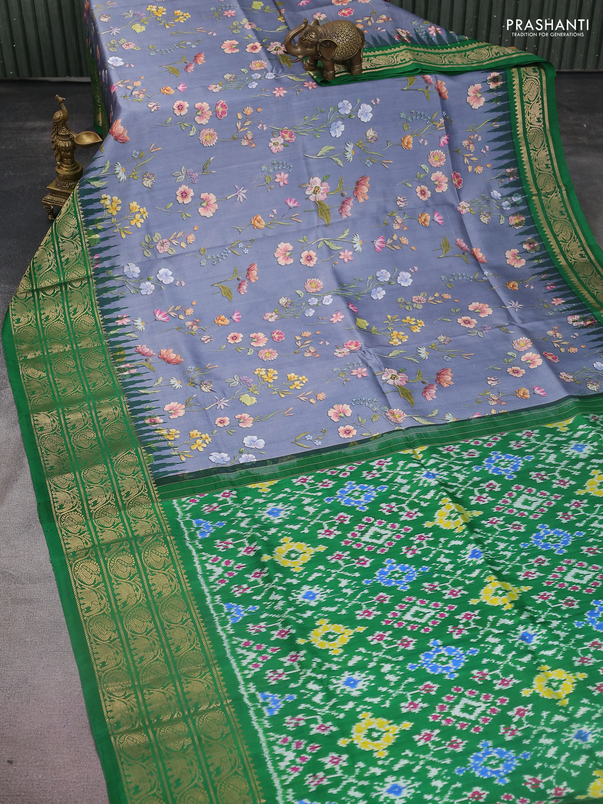 Pochampally silk saree bluish grey and green with allover floral digital prints and temple design annam zari woven border