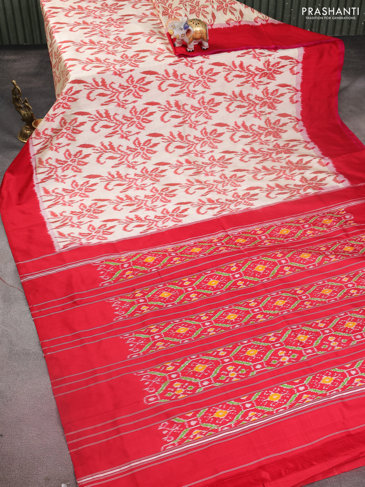 Pochampally silk saree cream and red with allover ikat weaves and simple border