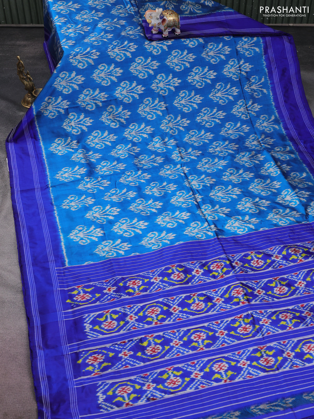Pochampally silk saree cs blue and blue with allover ikat butta weaves and rettapet woven border