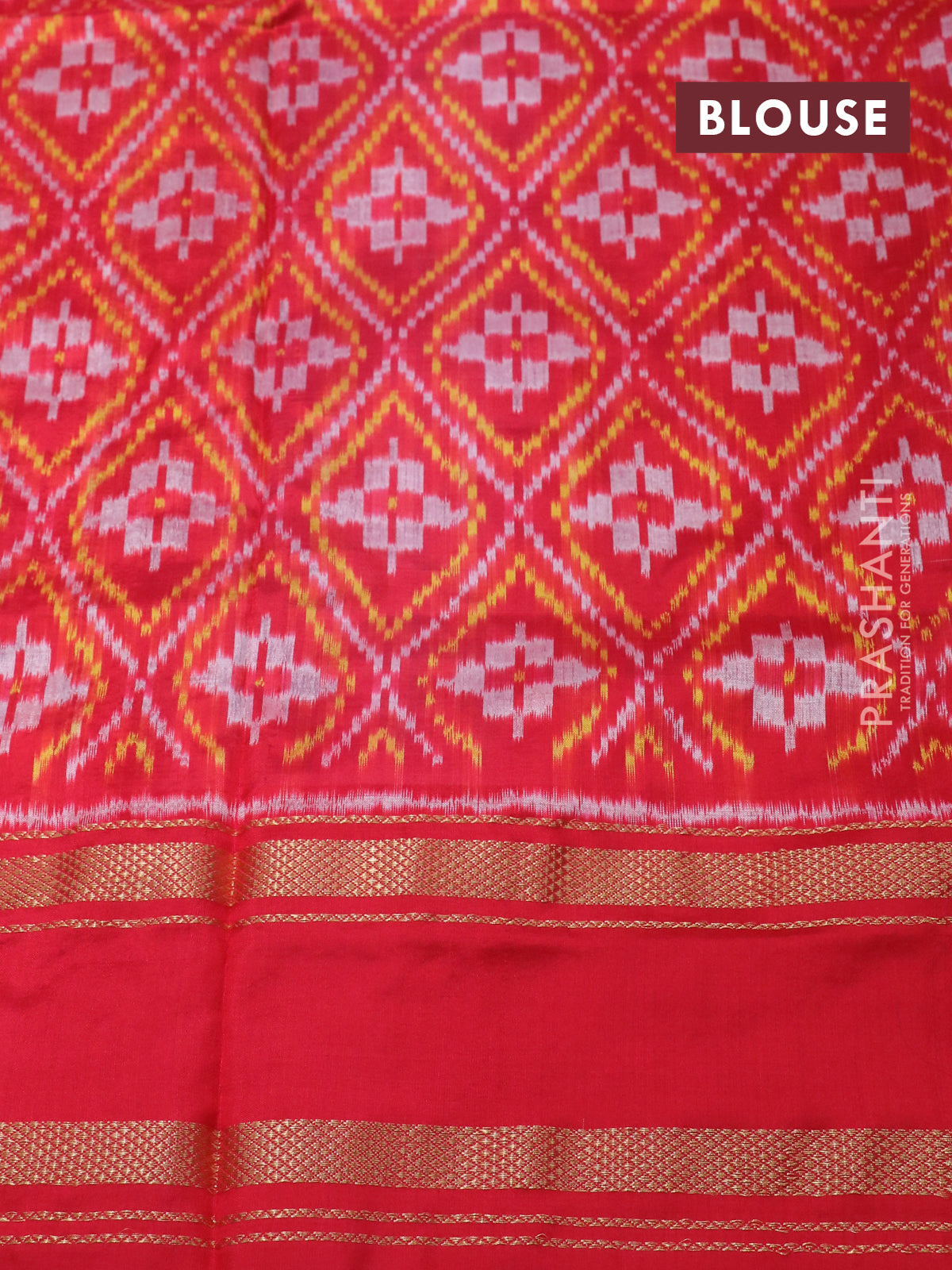 Pochampally silk saree cs blue and red with plain body and temple design zari woven border