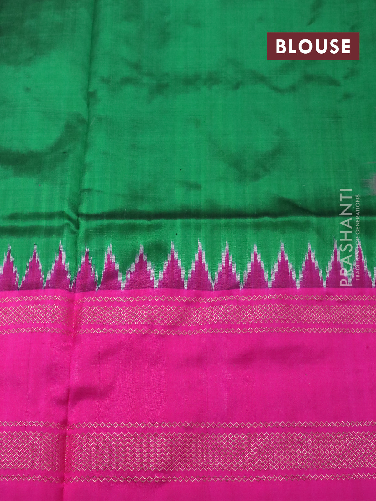 Pochampally silk saree green and pink with plain body and temple design zari woven border