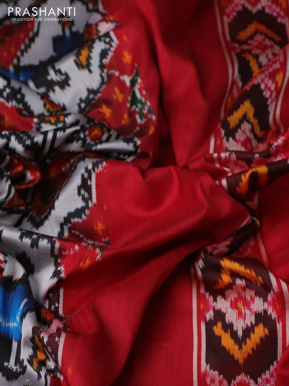 Pochampally silk saree grey and maroon with allover patola weaves and rettapet woven border