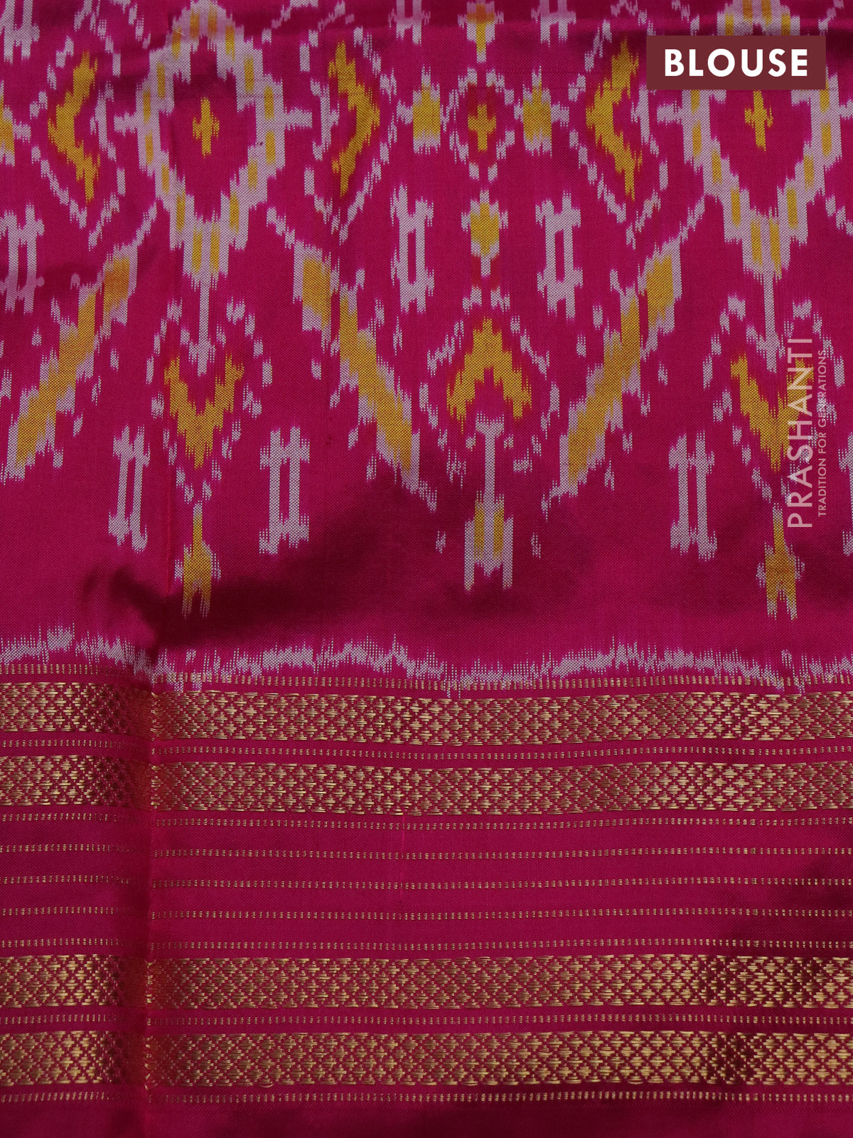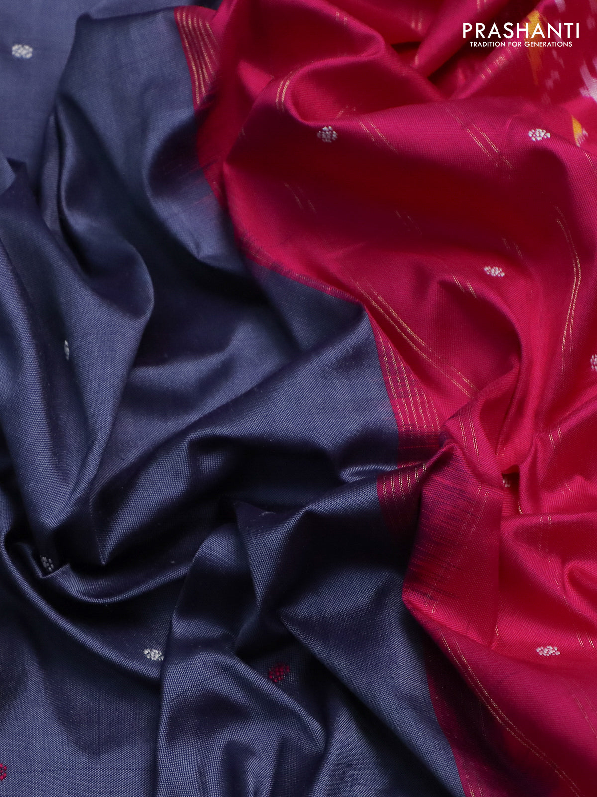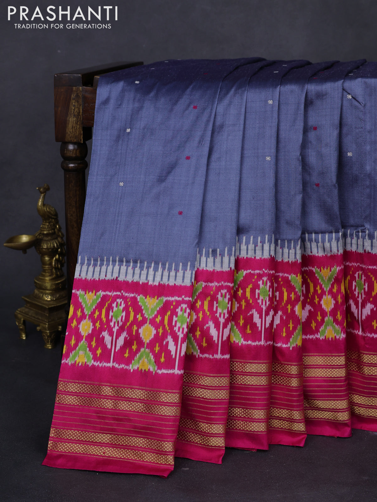 Pochampally silk saree grey and pink with thread woven buttas and long ikat woven zari border