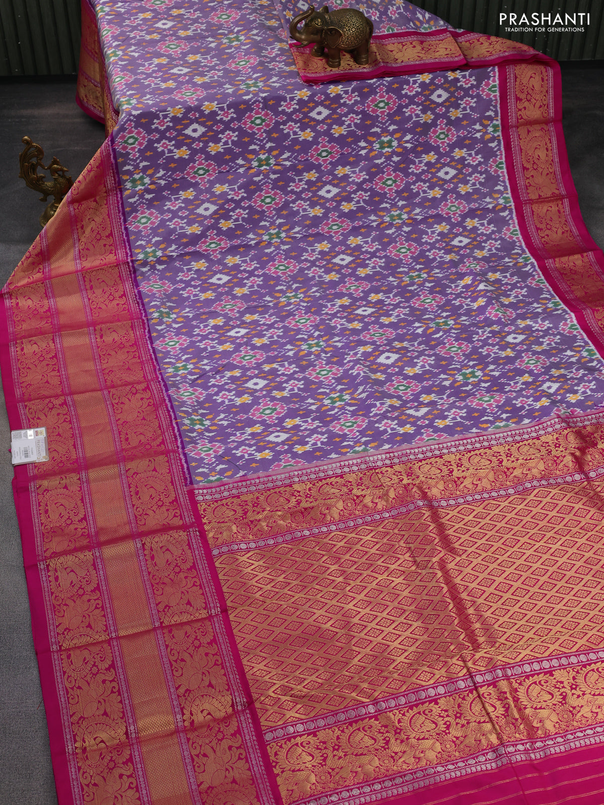 Pochampally silk saree lavender and pink with allover ikat weaves and long zari woven border