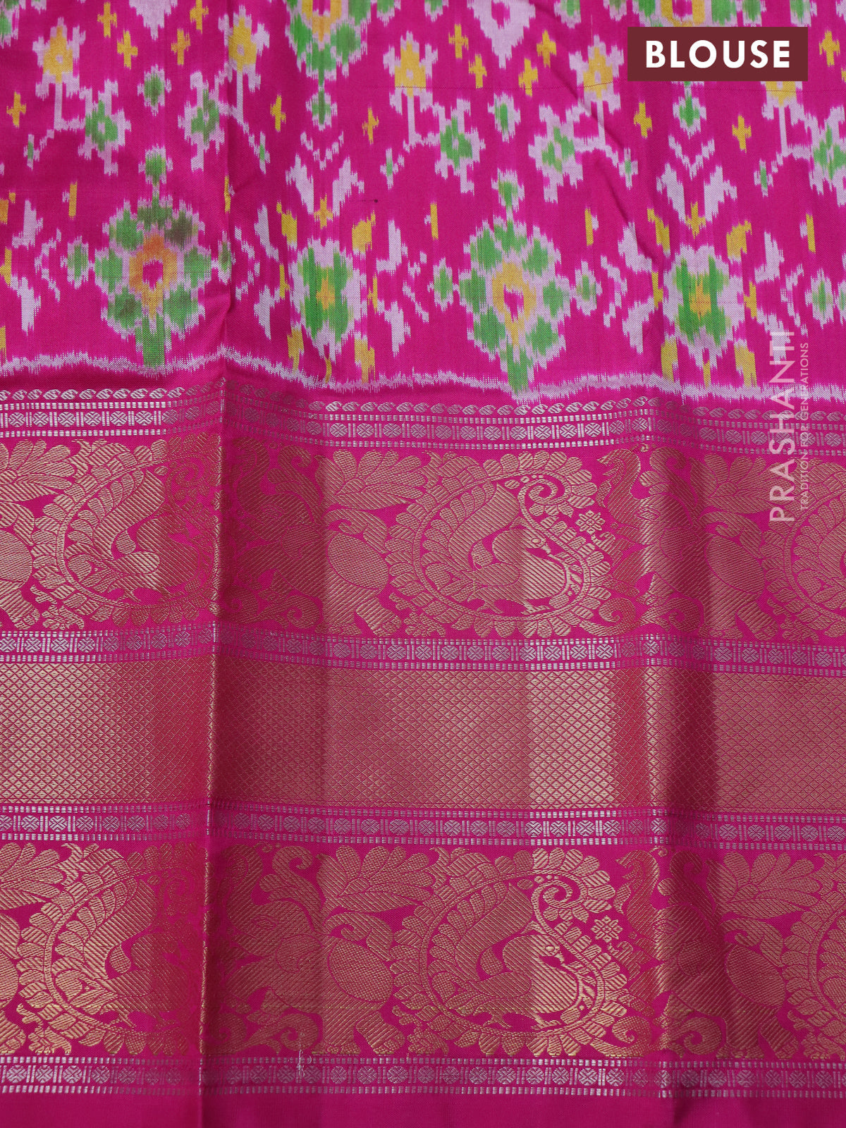 Material :Pochampally Silk SILK MARK CERTIFIED Blouse : Attached Length of saree : 6.2 mts (5.5 mts saree & 70... Read more