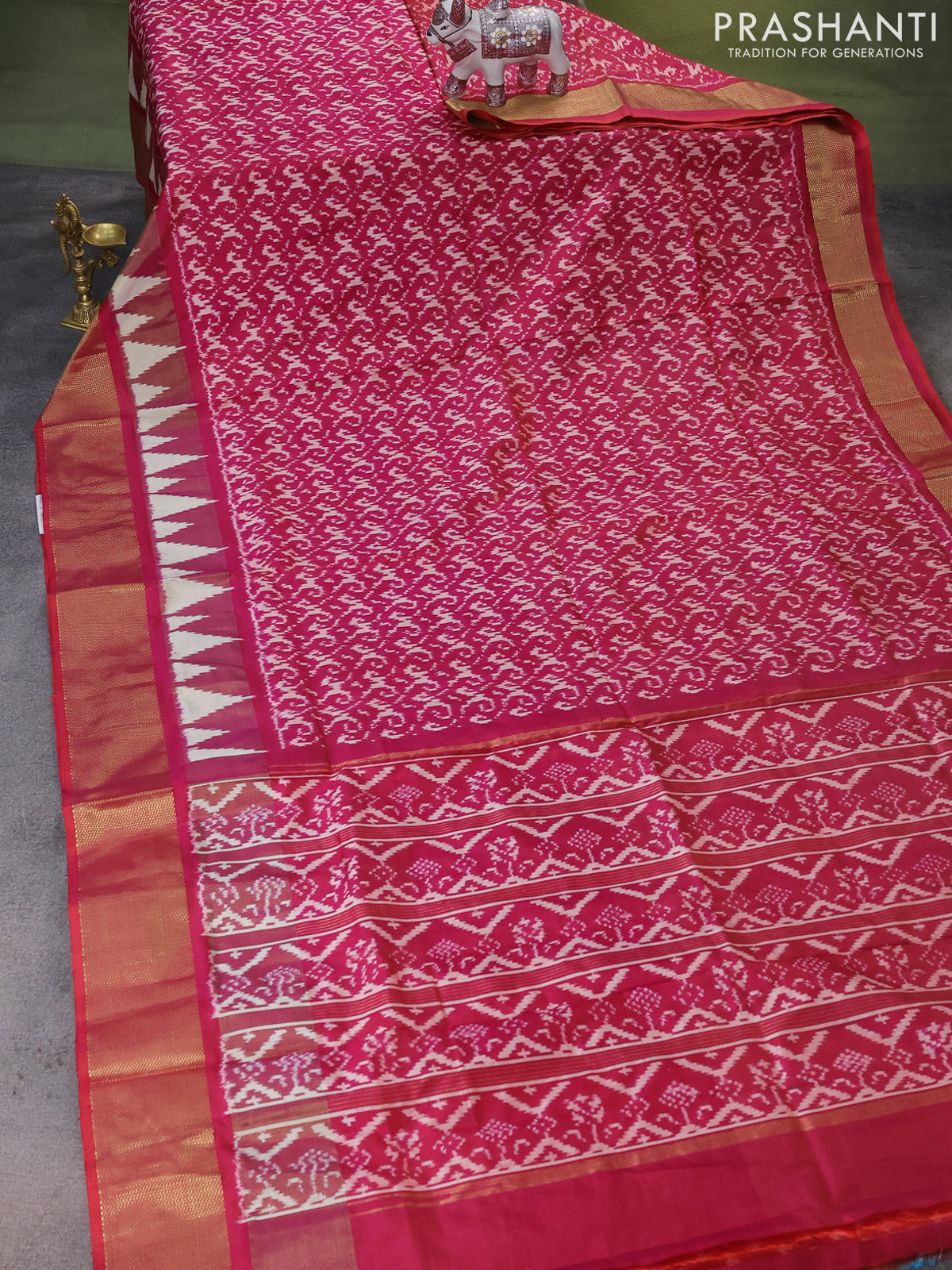 Pochampally silk saree magenta pink with allover ikat weaves and zari woven border