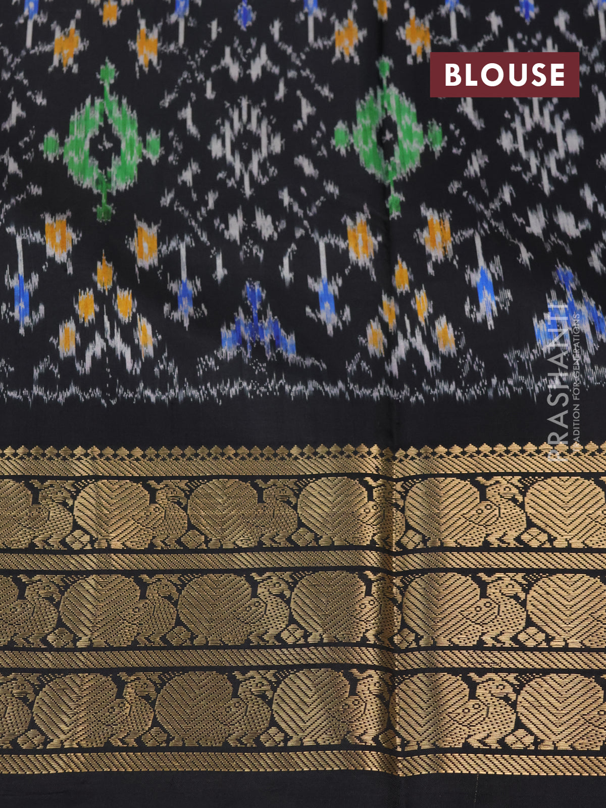Pochampally silk saree military green and black with allover floral digital prints and temple design zari woven border