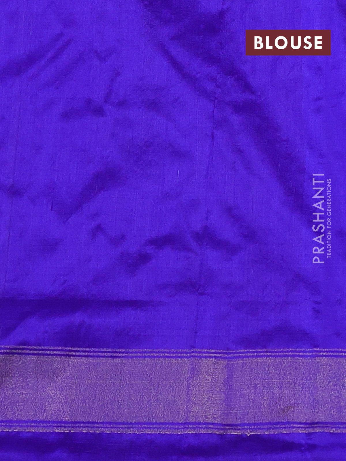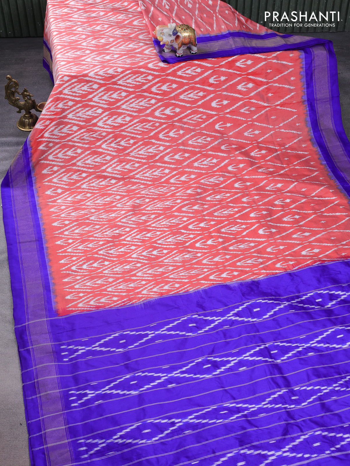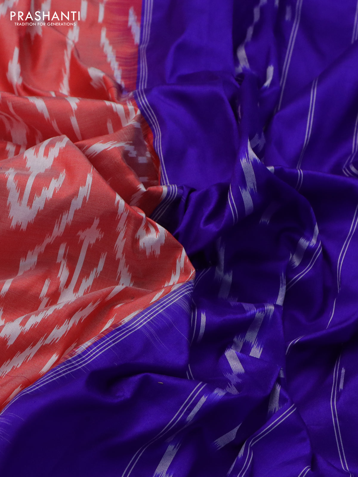 Pochampally silk saree orange and blue with allover ikat weaves and zari woven border