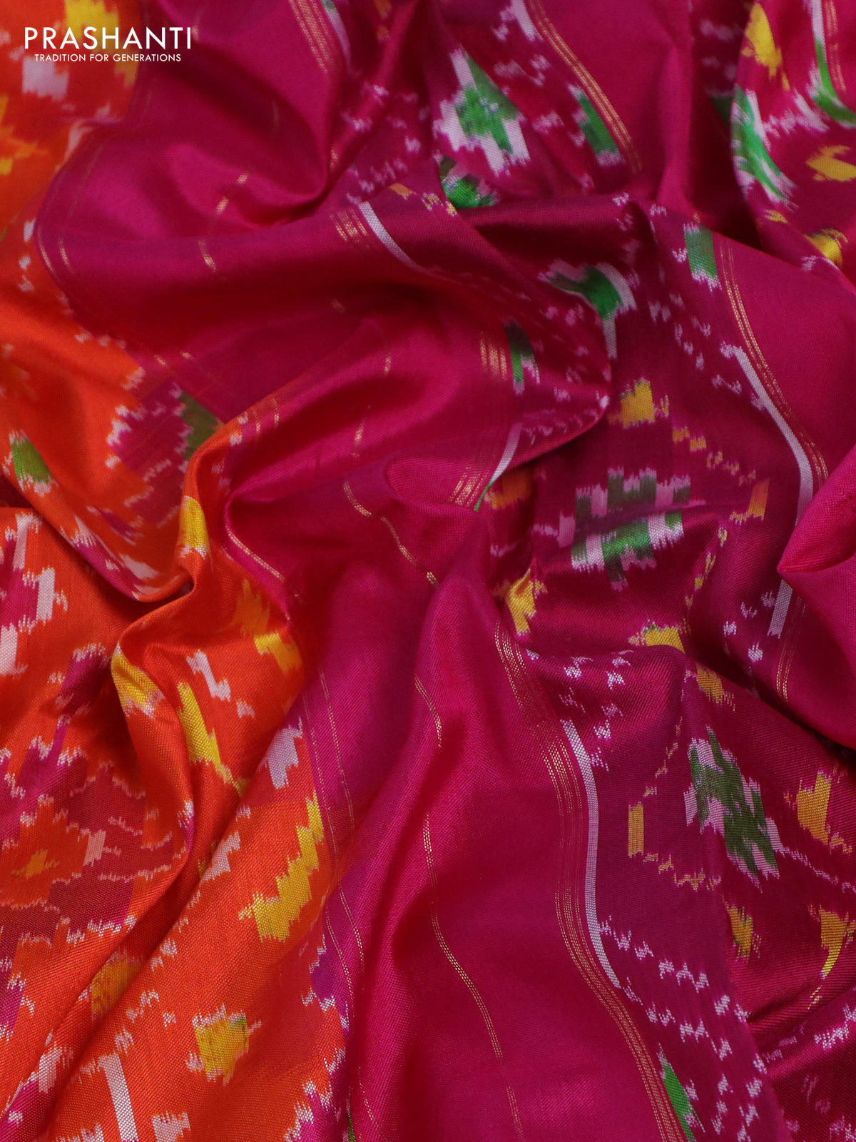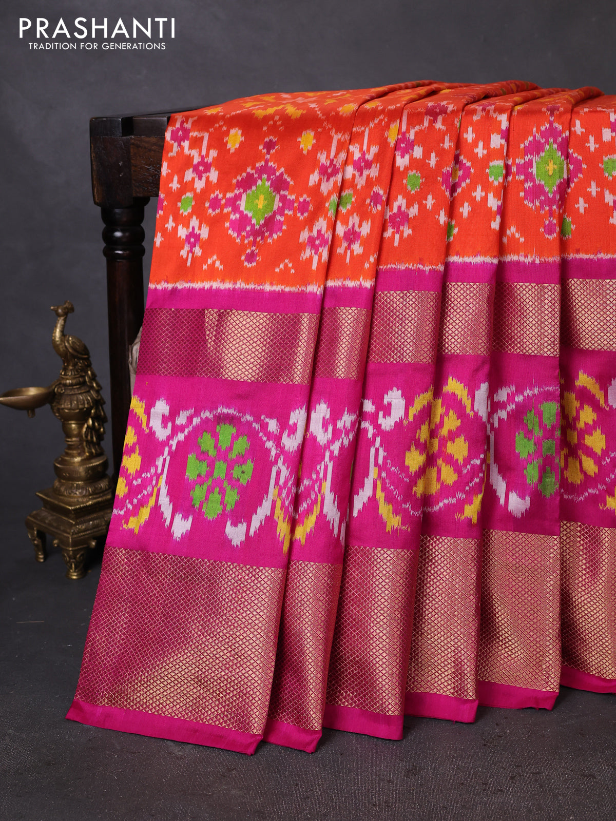 Pochampally silk saree orange and pink with allover ikat weaves and zari woven border