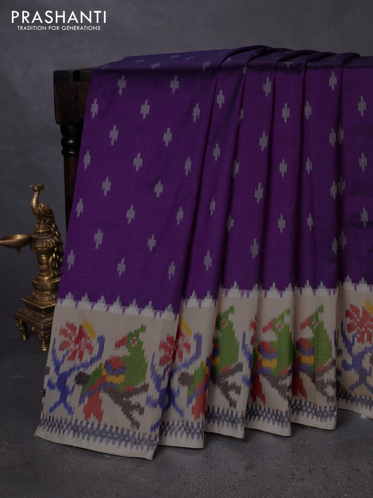 Pochampally silk saree violet and cream with ikat butta weaves and ikat woven zari border
