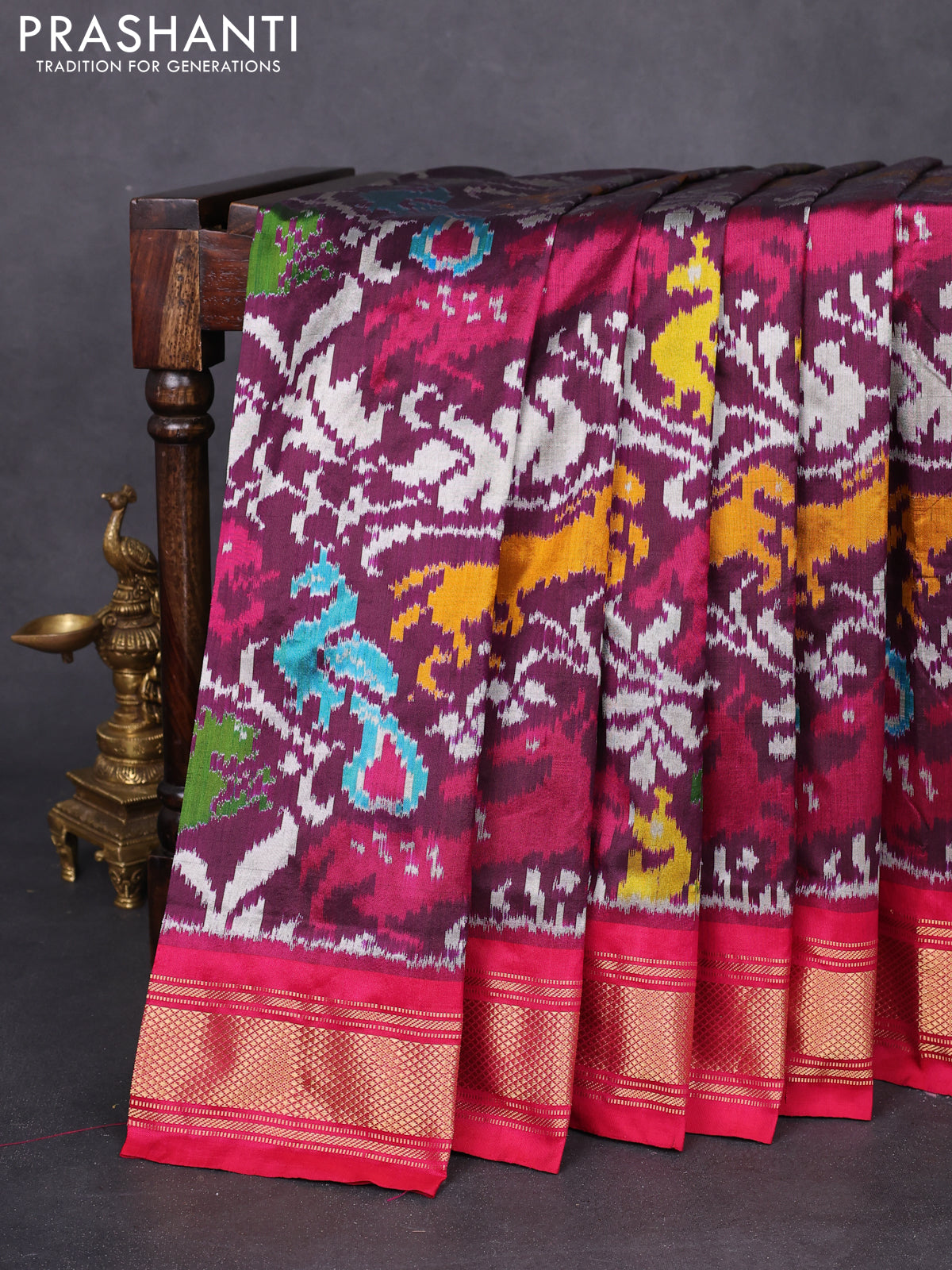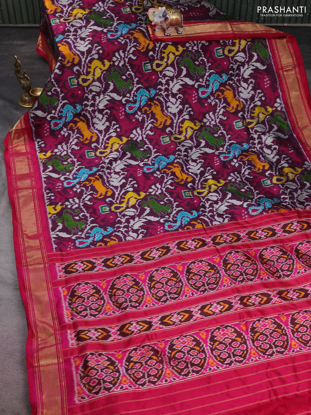Pochampally silk saree wine shade and pink with allover patola weaves and zari woven border