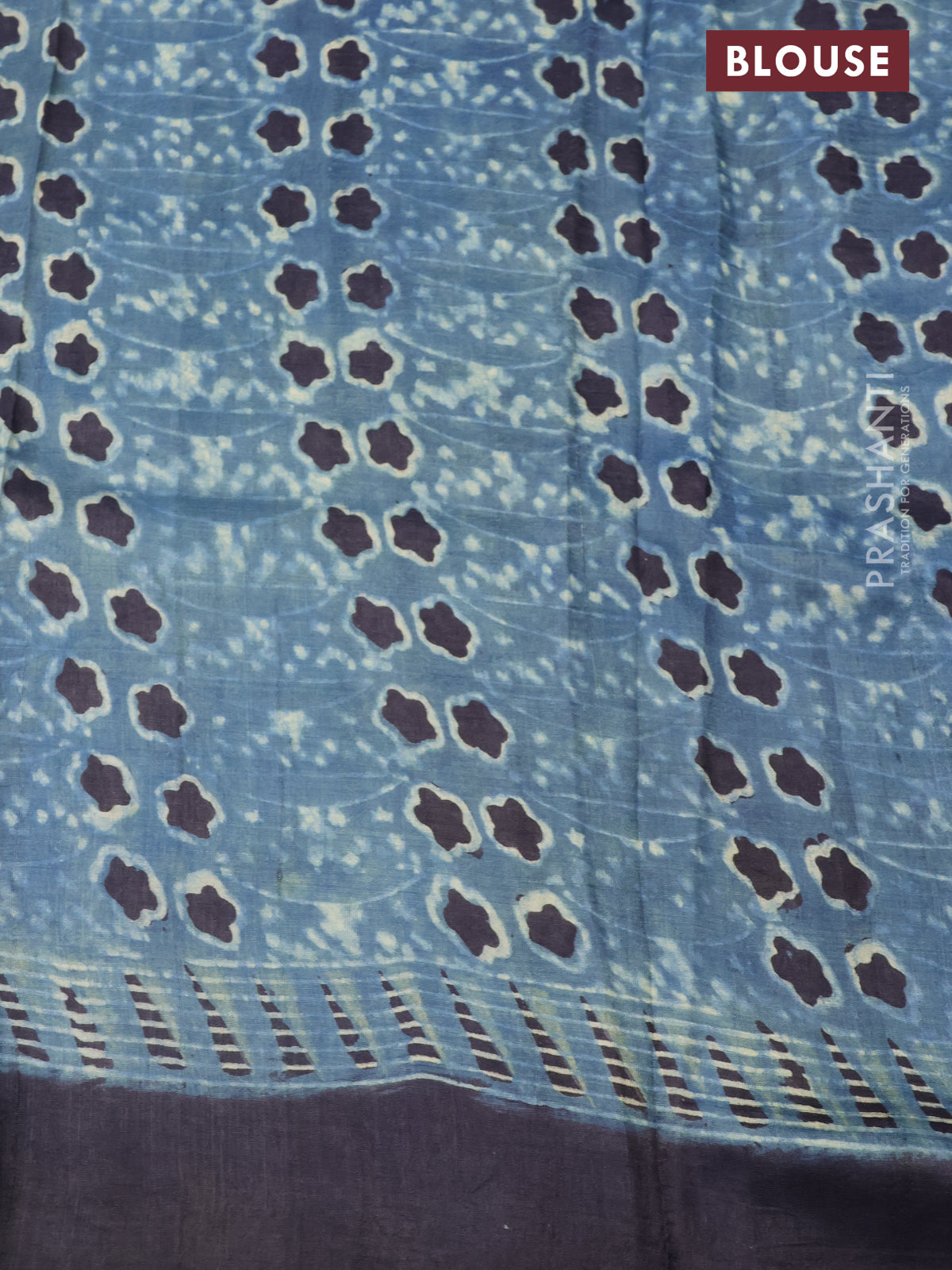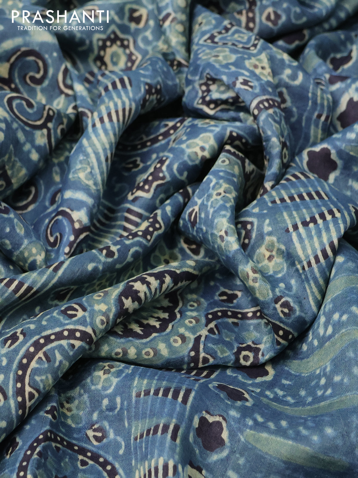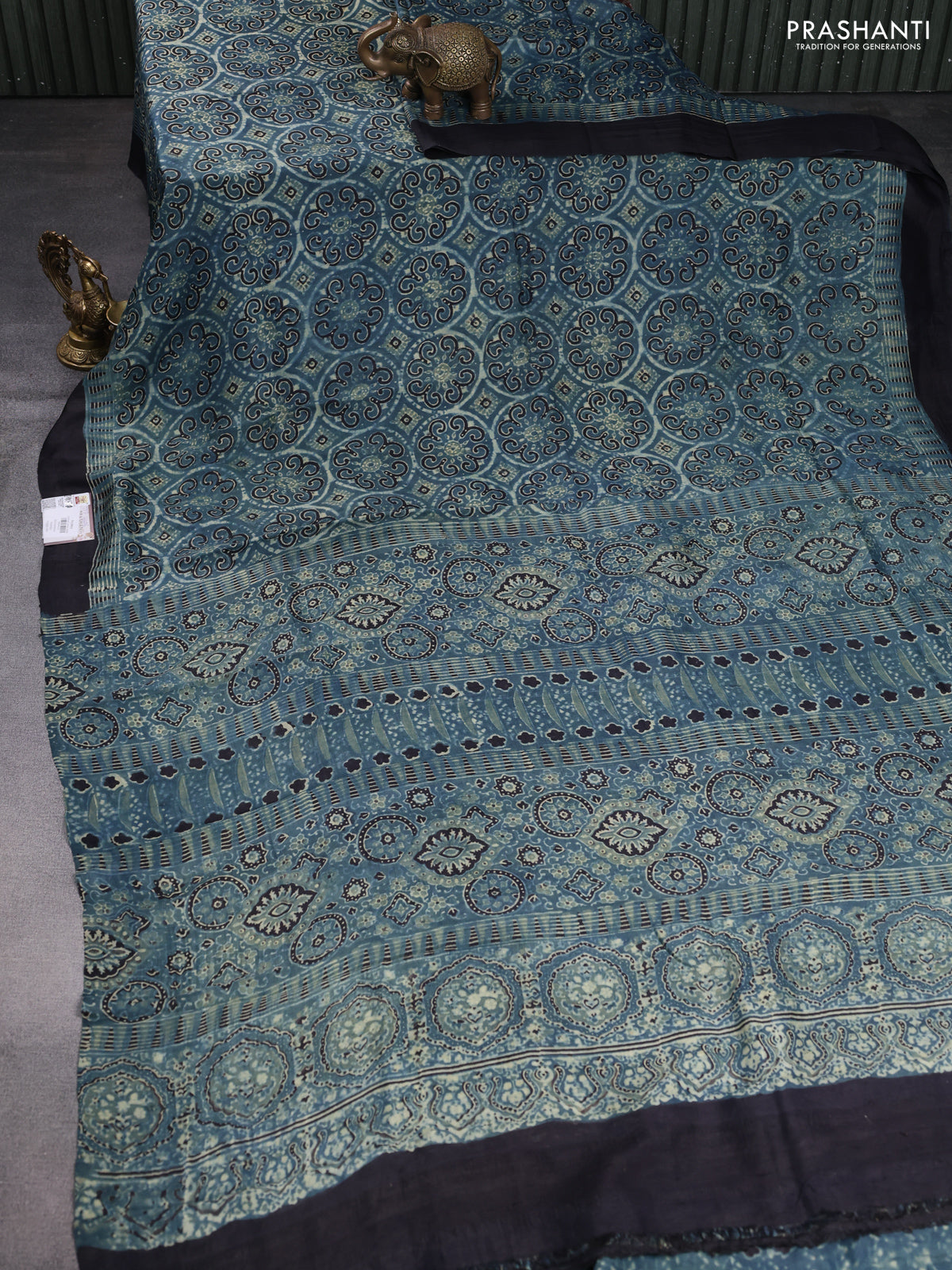 Printed silk saree blue and black with allover ajrakh prints and simple border