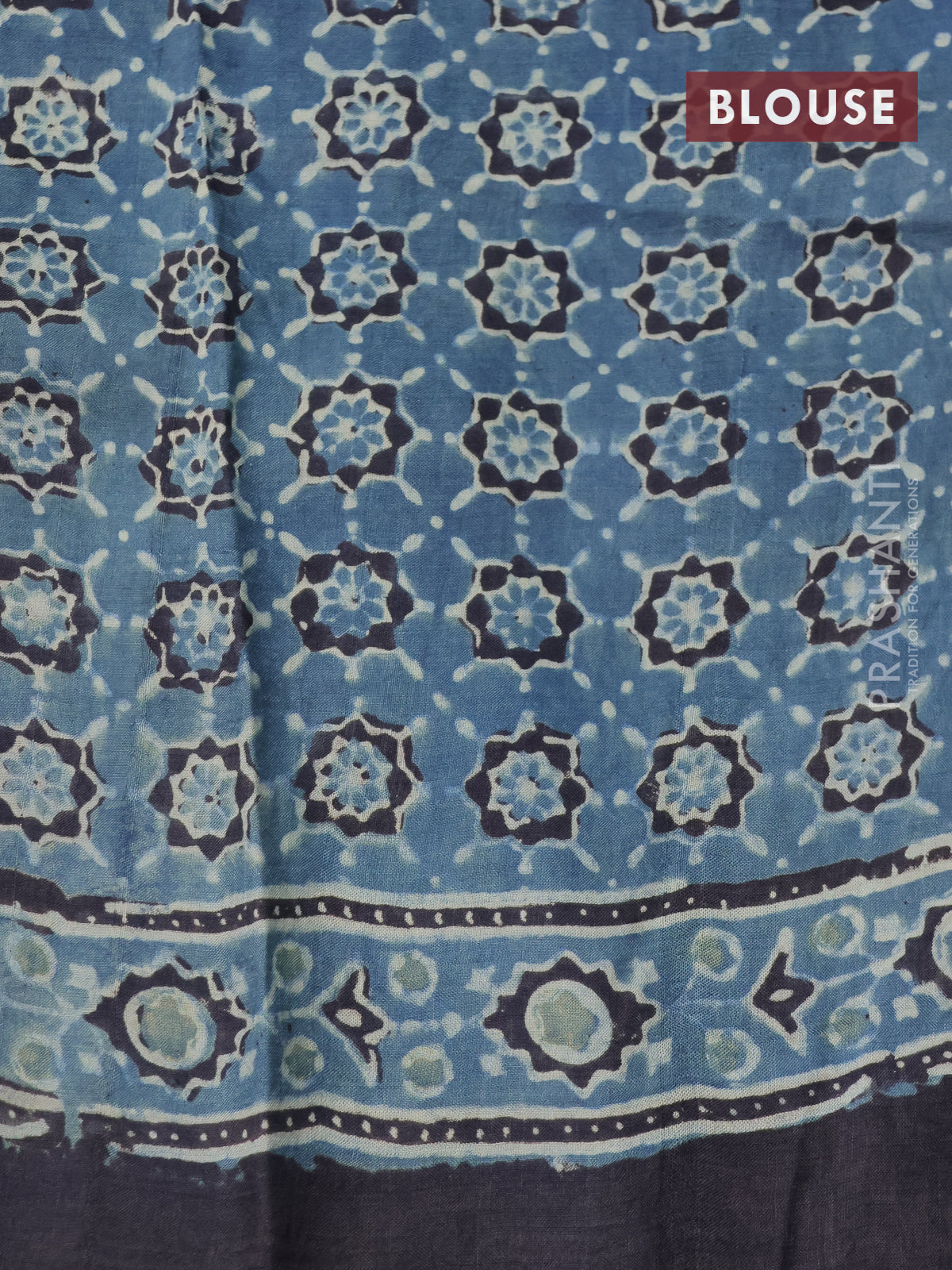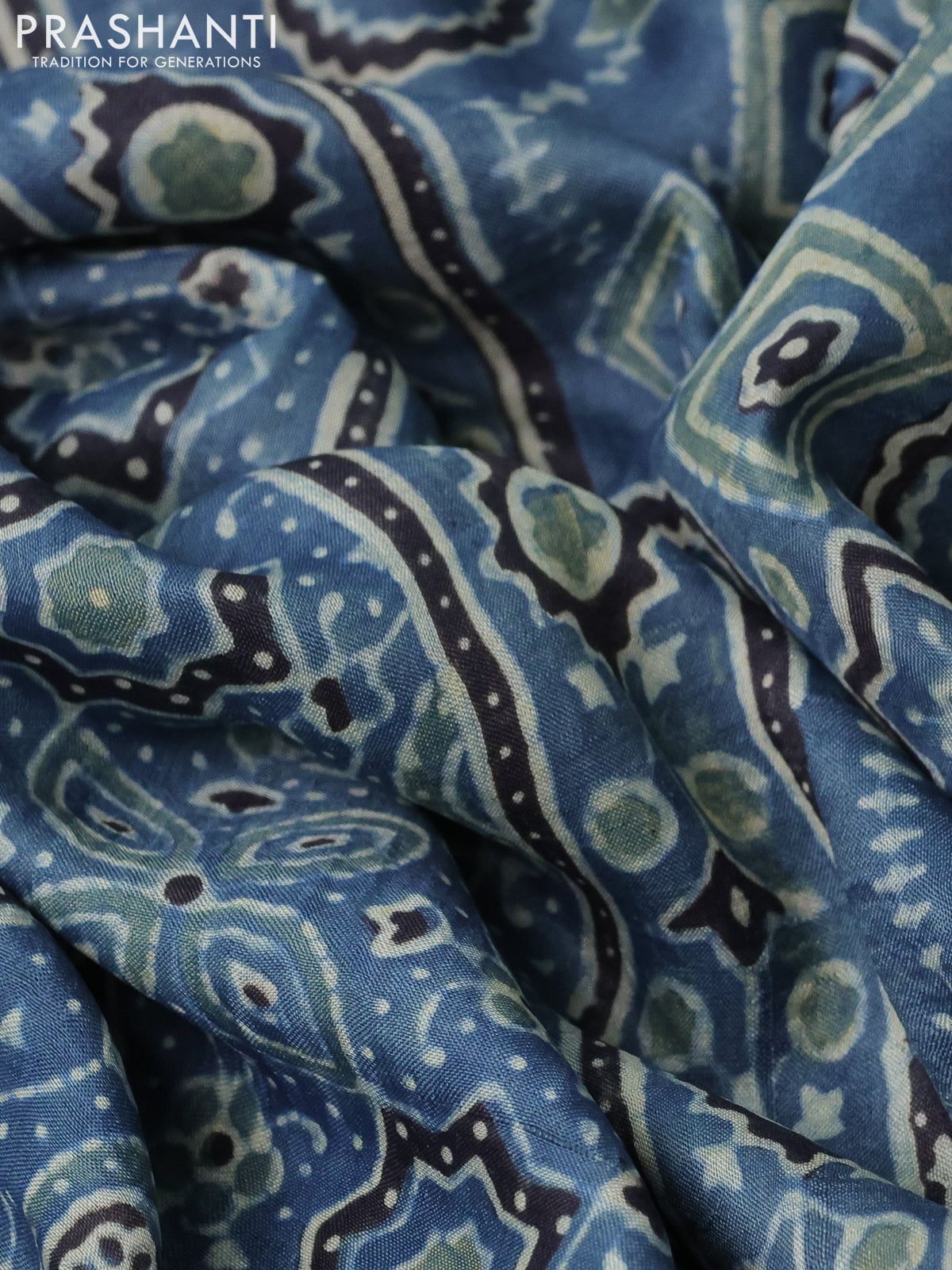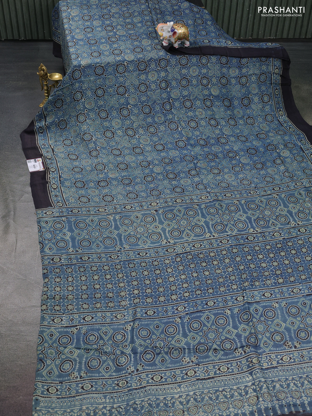 Printed silk saree blue and black with allover ajrakh prints and simple border
