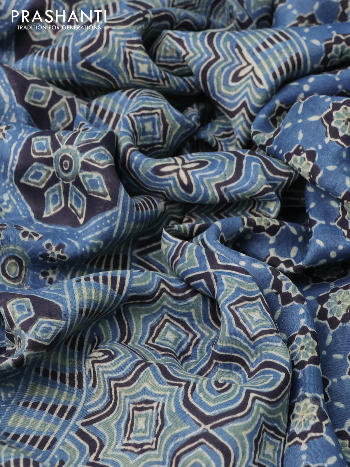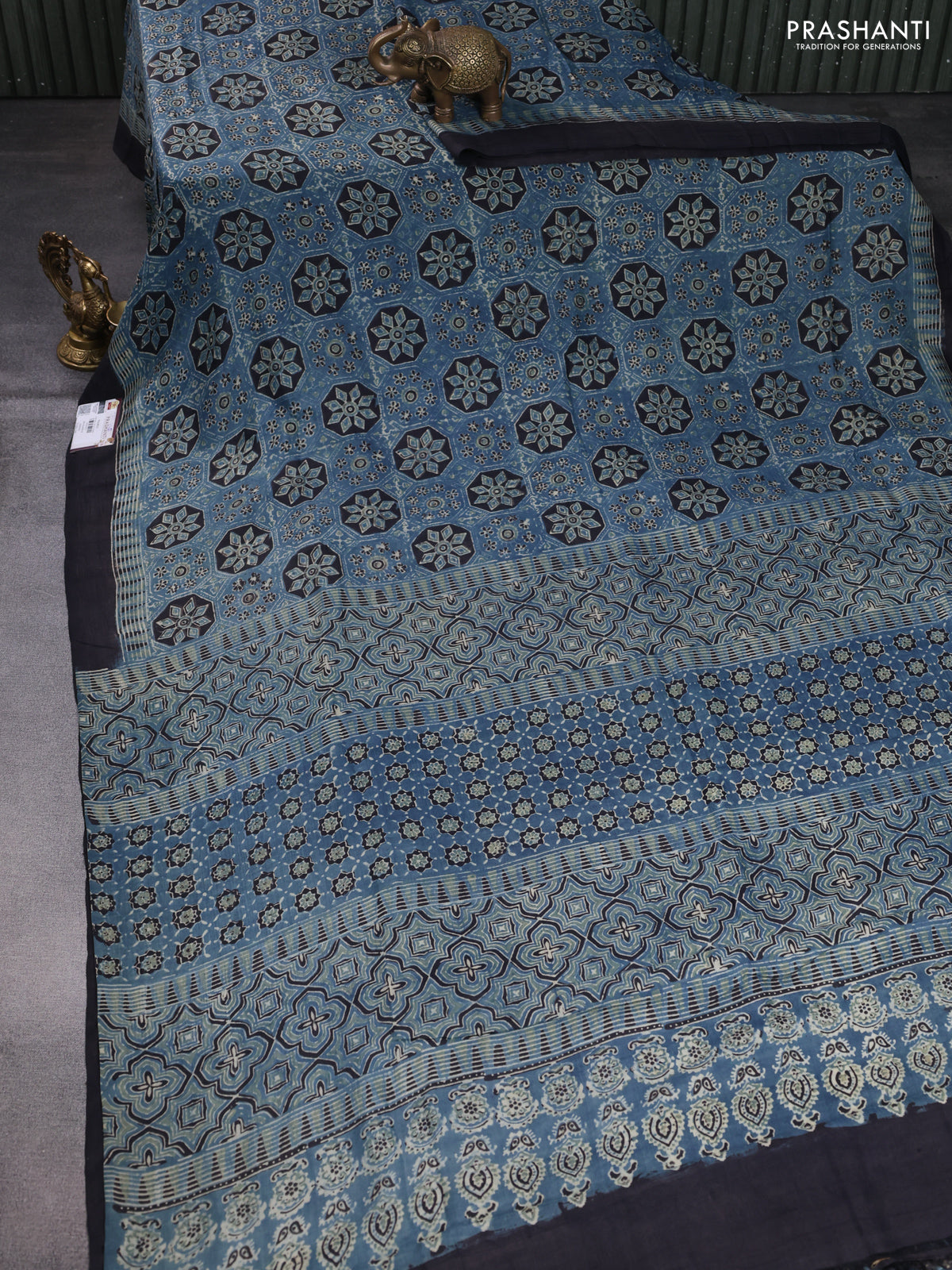 Printed silk saree blue and black with allover ajrakh prints and simple border