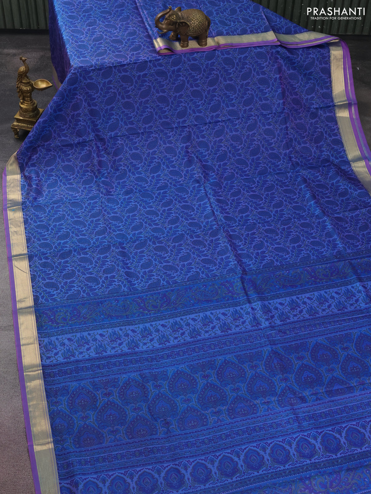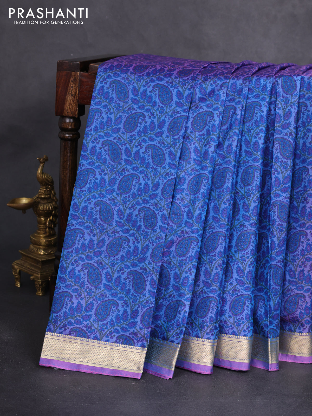 Printed silk saree dual shade of lavender with allover prints and zari woven border