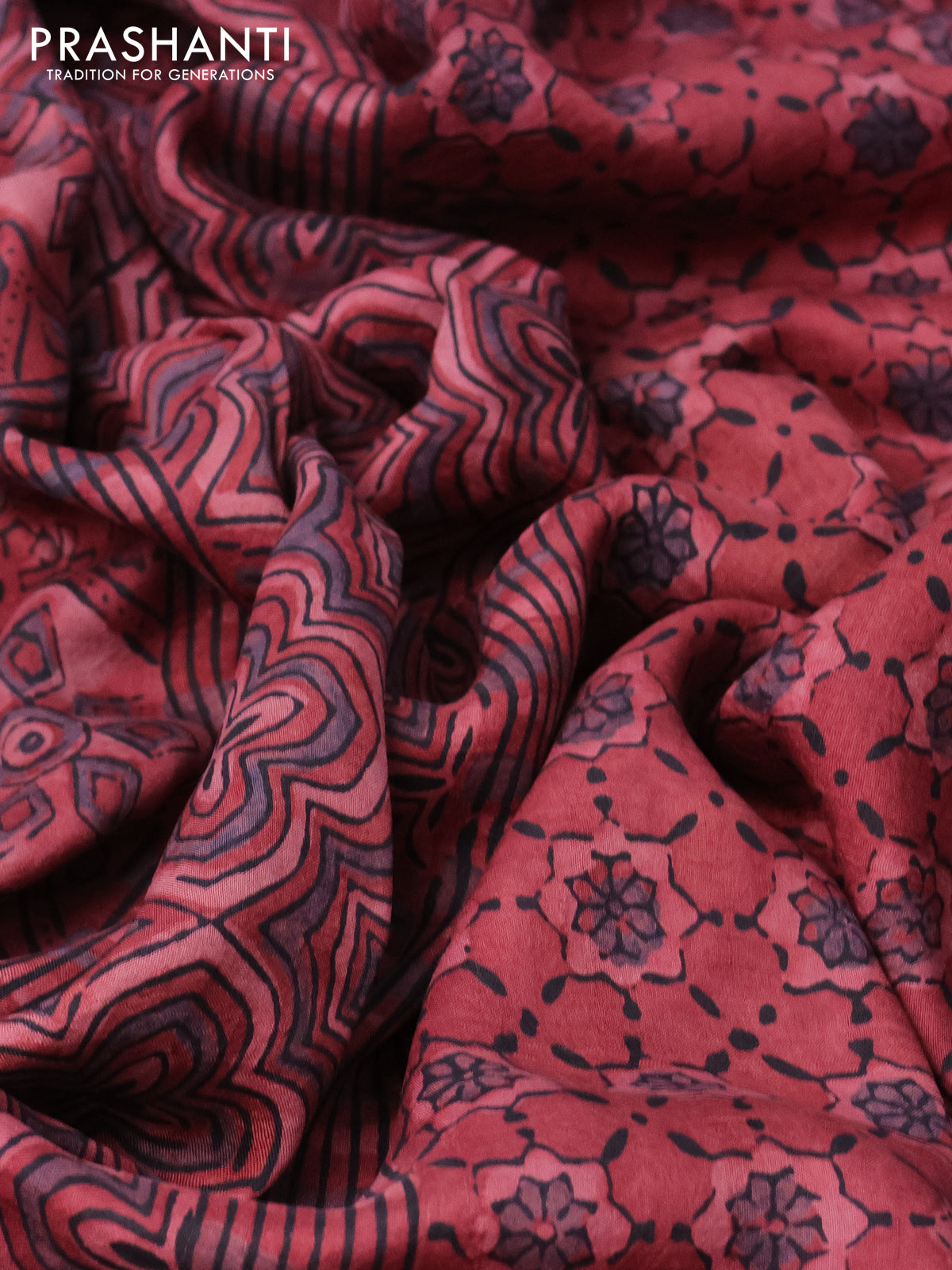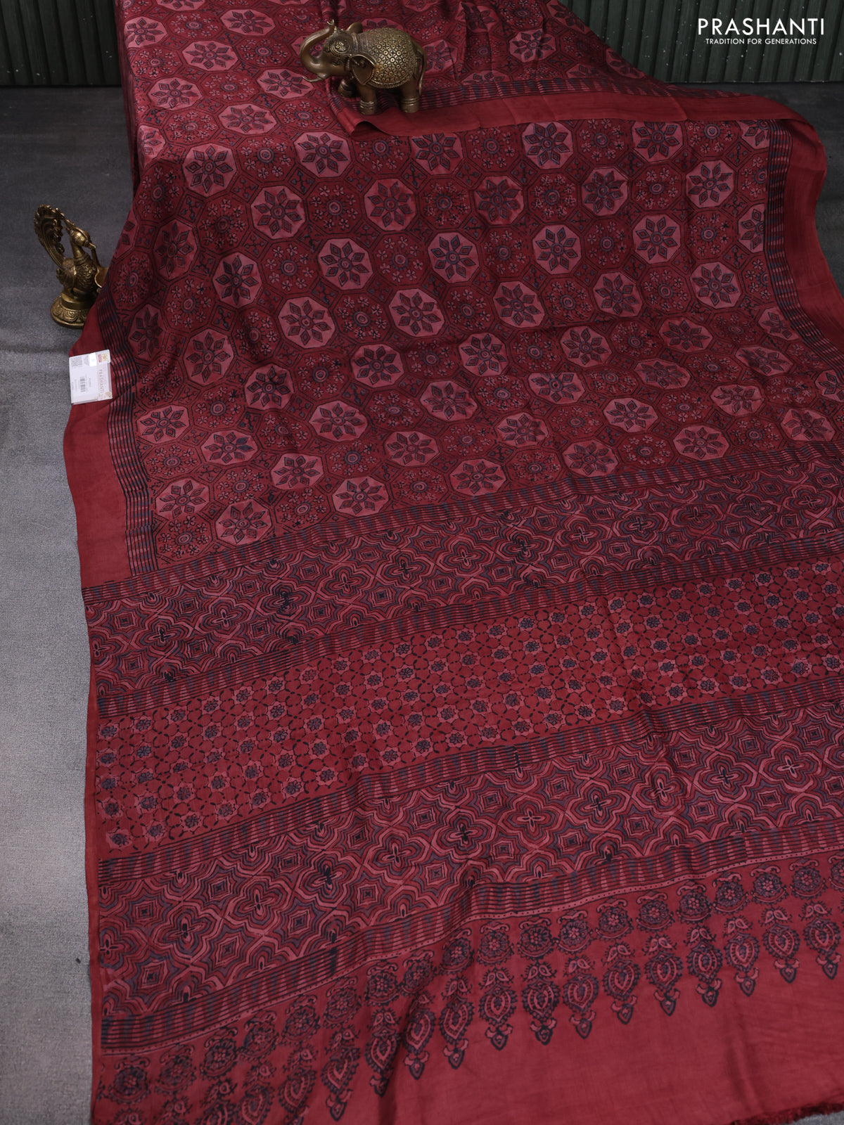 Printed silk saree maroon with allover ajrakh prints and simple border