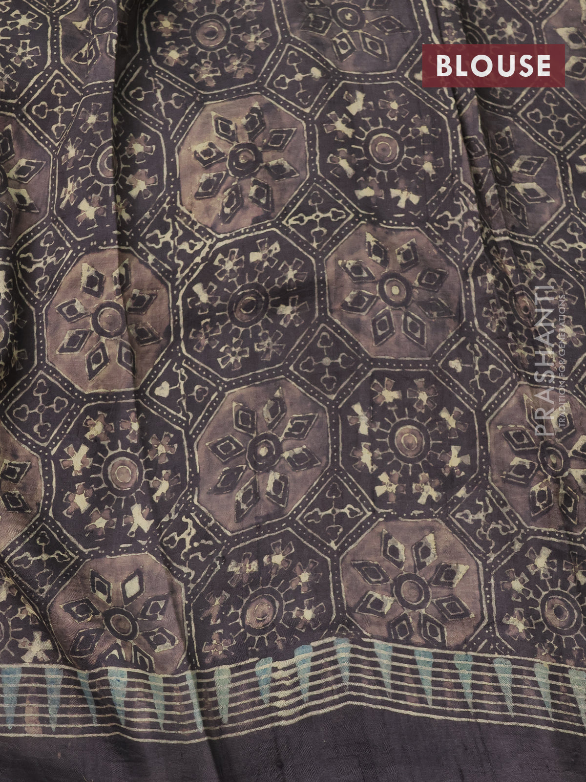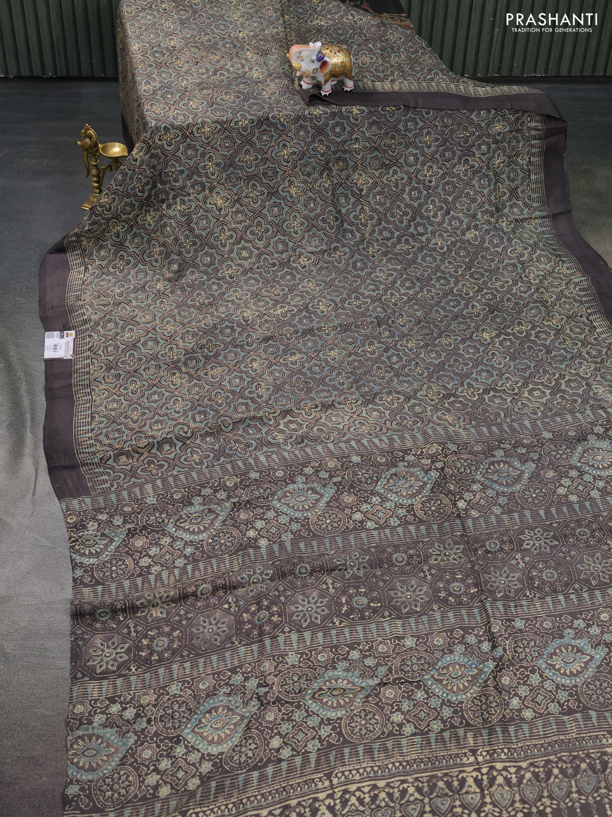 Printed silk saree pastel blue and grey with allover ajrakh prints and simple border