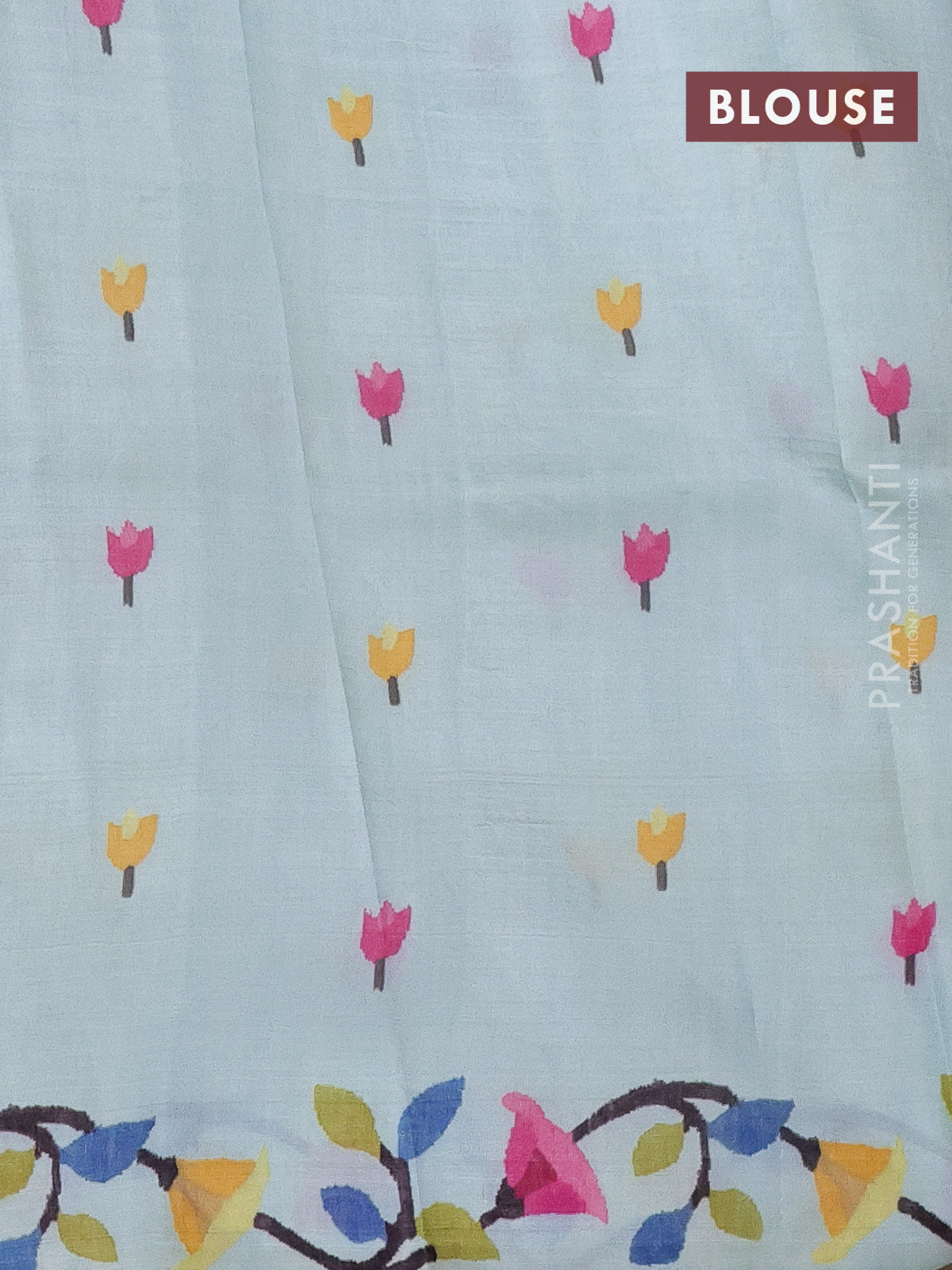 Printed silk saree pastel blue with floral butta prints and long printed border