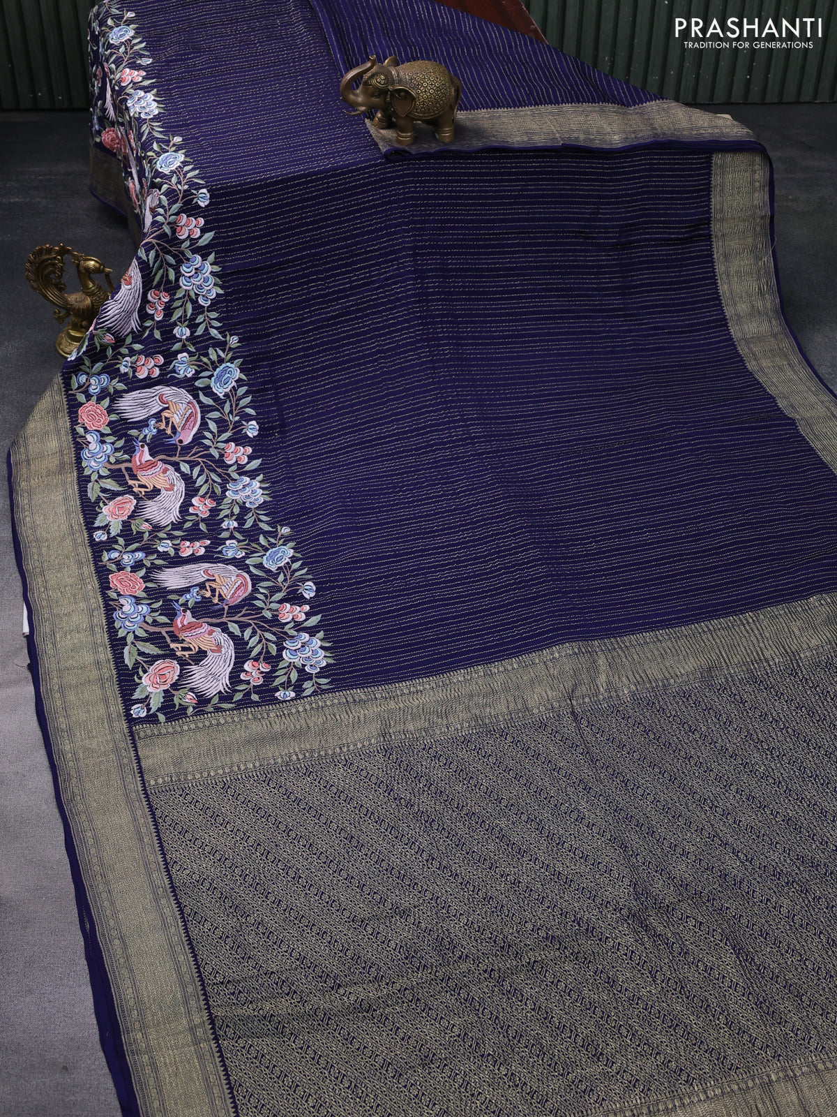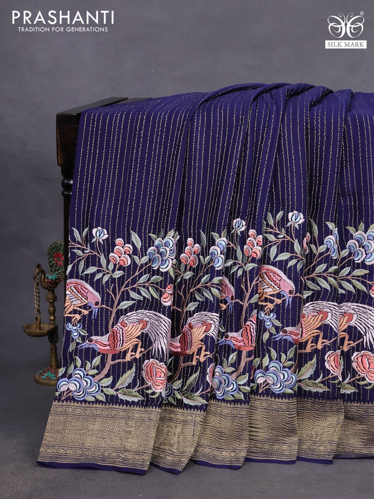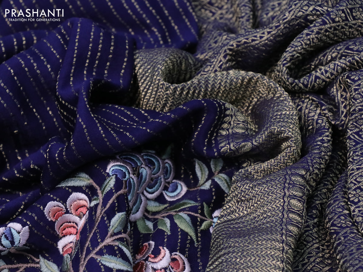 Pure crepe saree blue with allover zari weaves & embroidery work and zari woven border