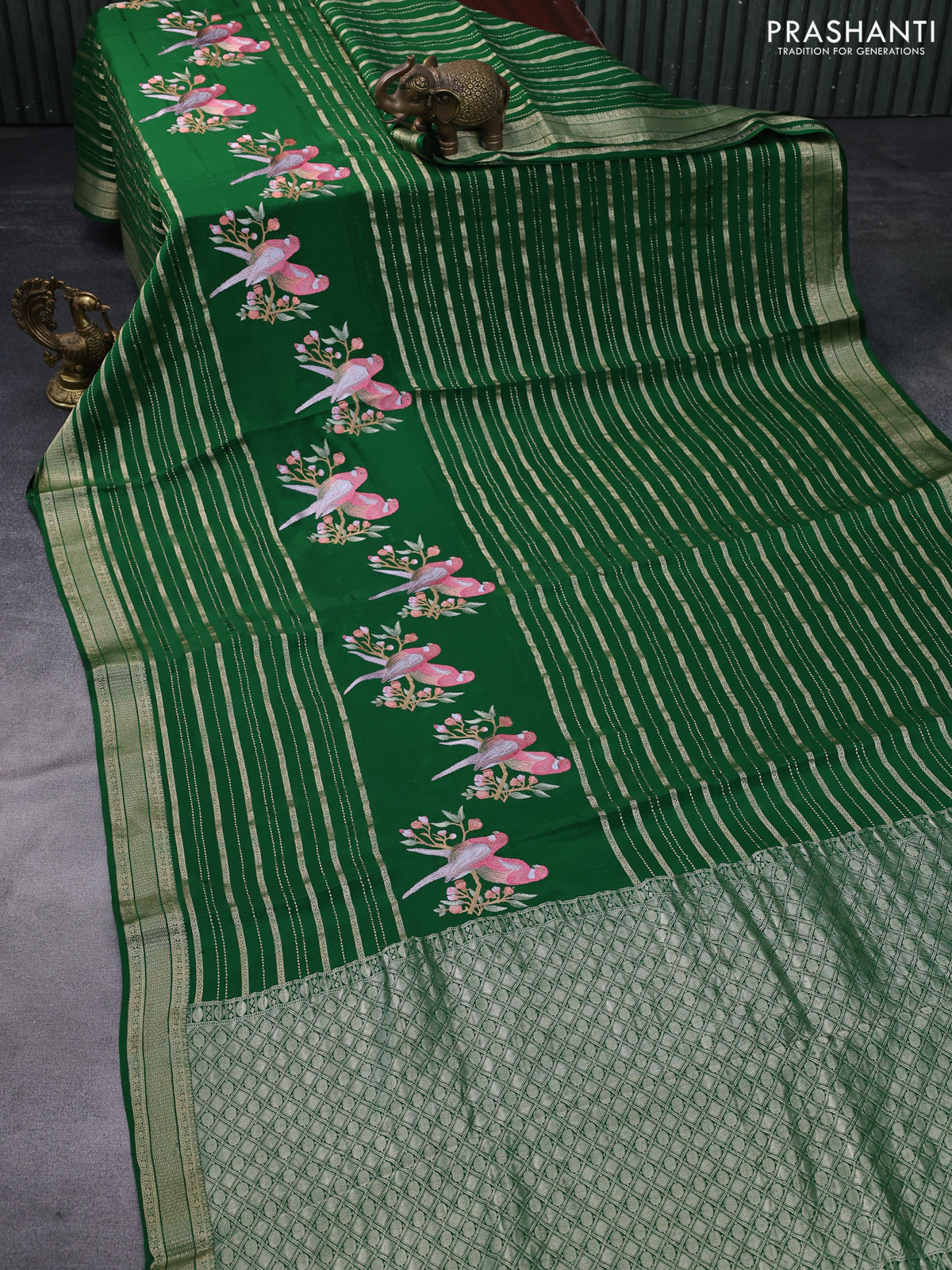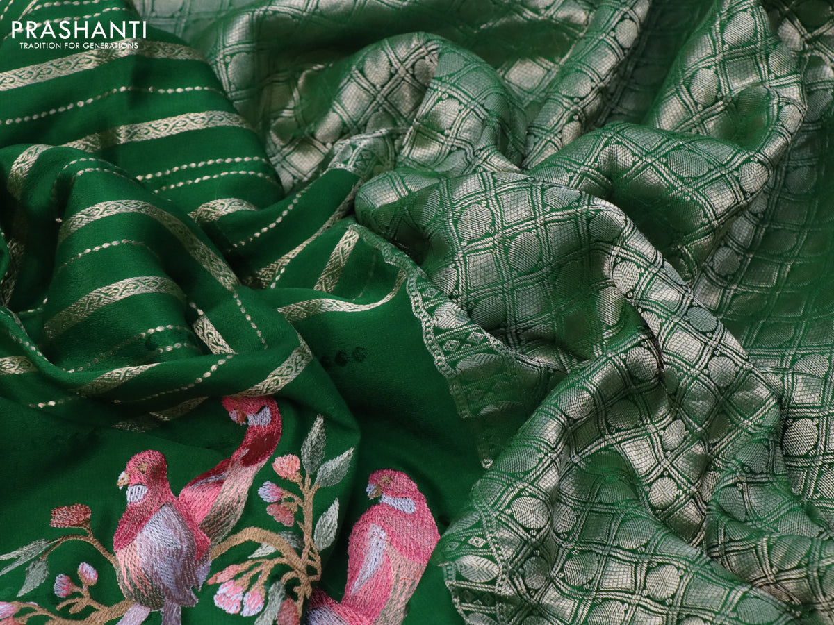Pure crepe saree green with allover zari weaves & embroidery work and zari woven border
