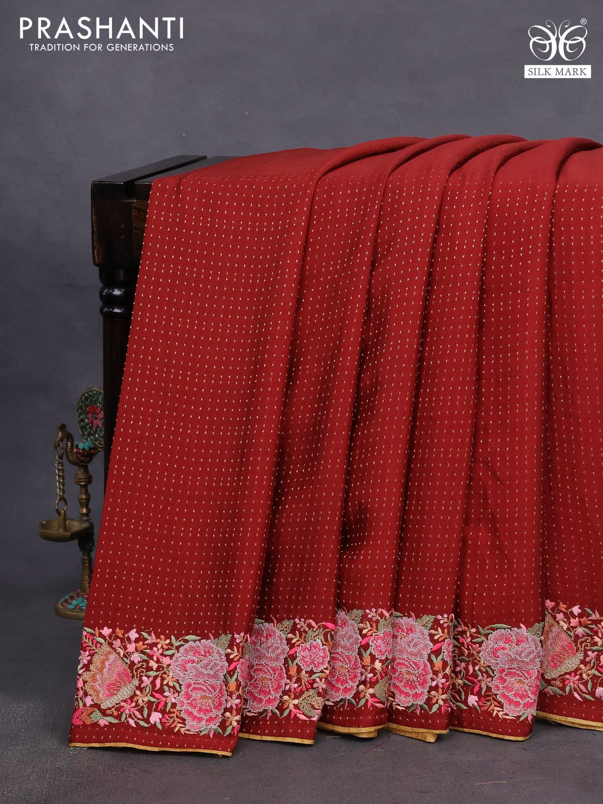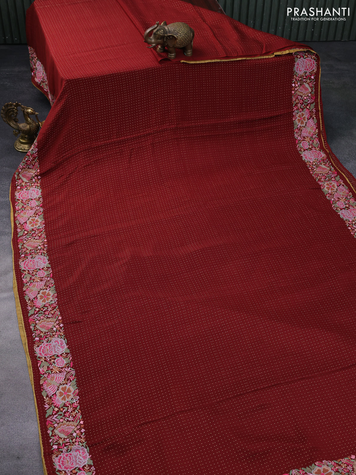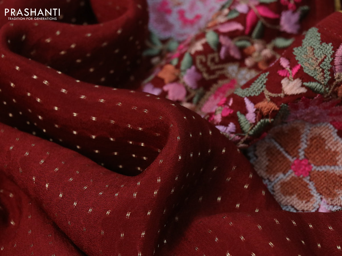 Pure crepe saree maroon shade with allover zari woven butta weaves and embroidery work border