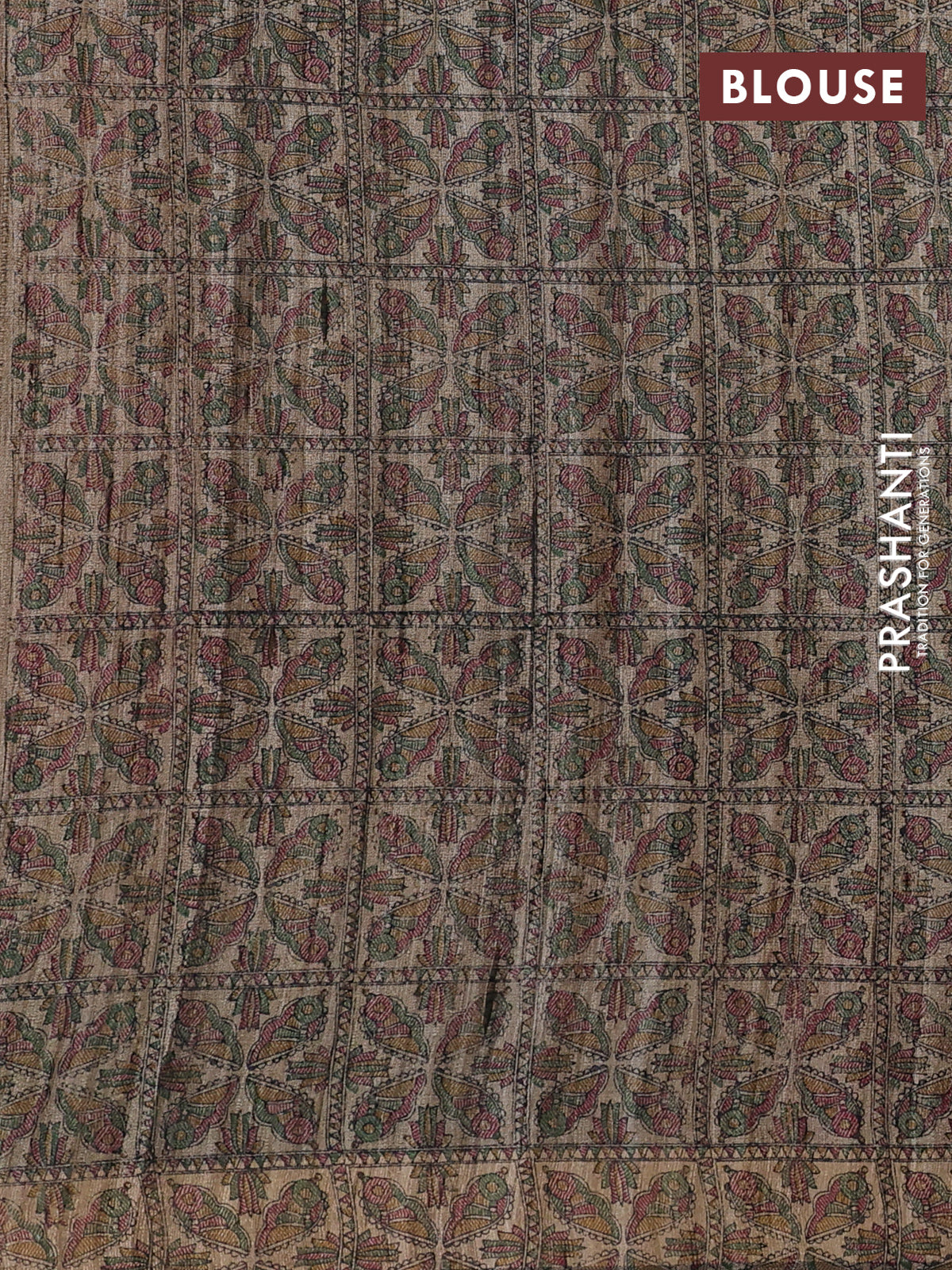 Pure dupion saree maroon and beige with plain body and madhubani printed pallu & blouse