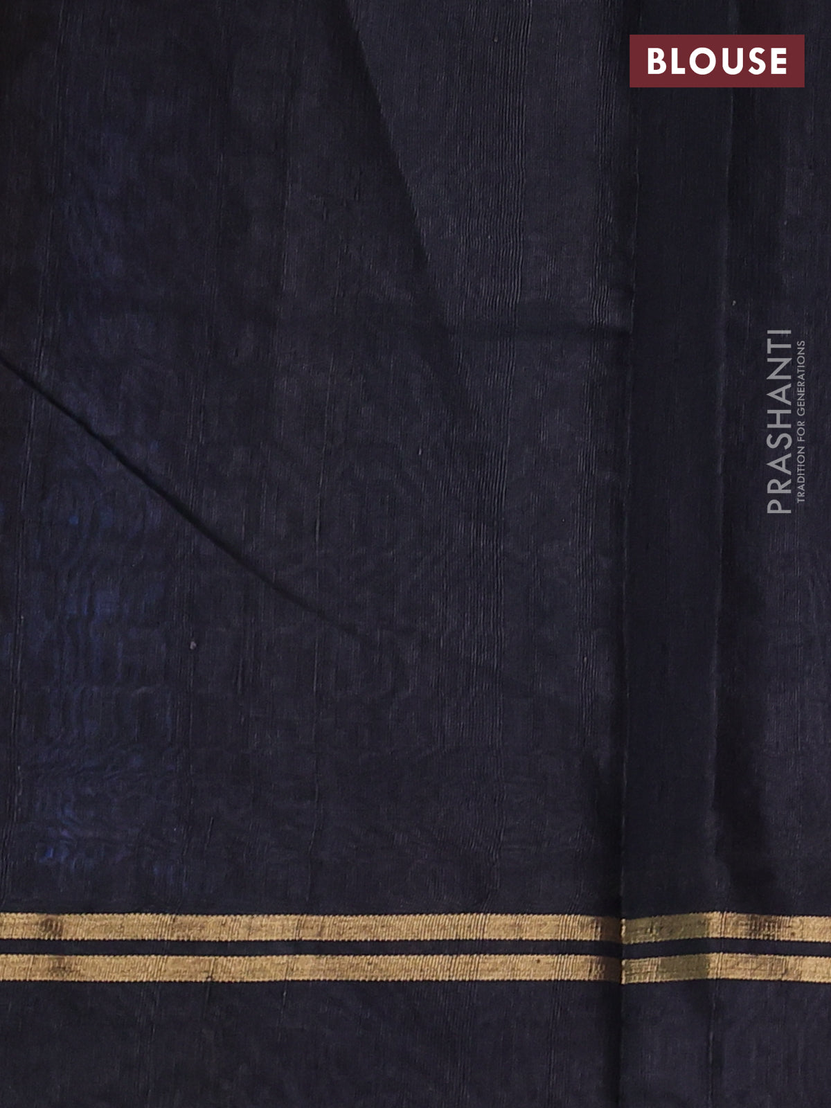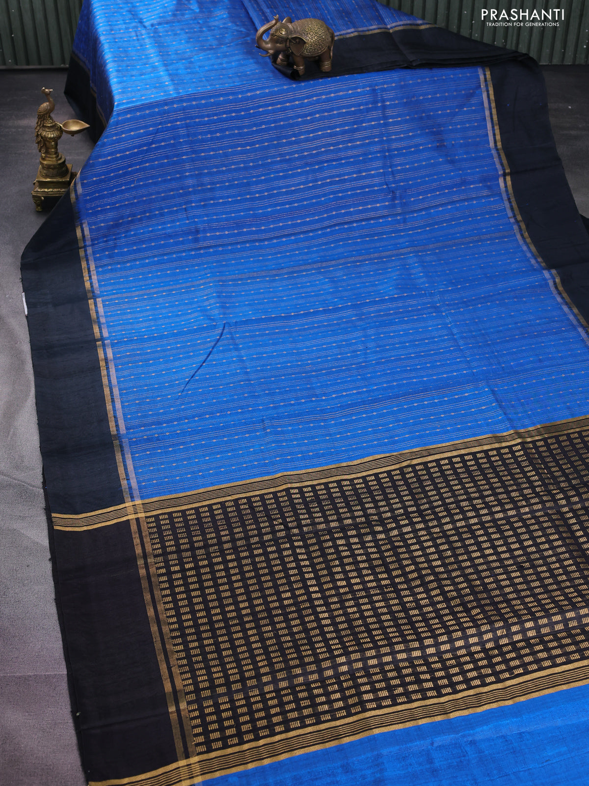 Pure dupion silk saree cs blue and black with allover zari weaves and zari woven simple border