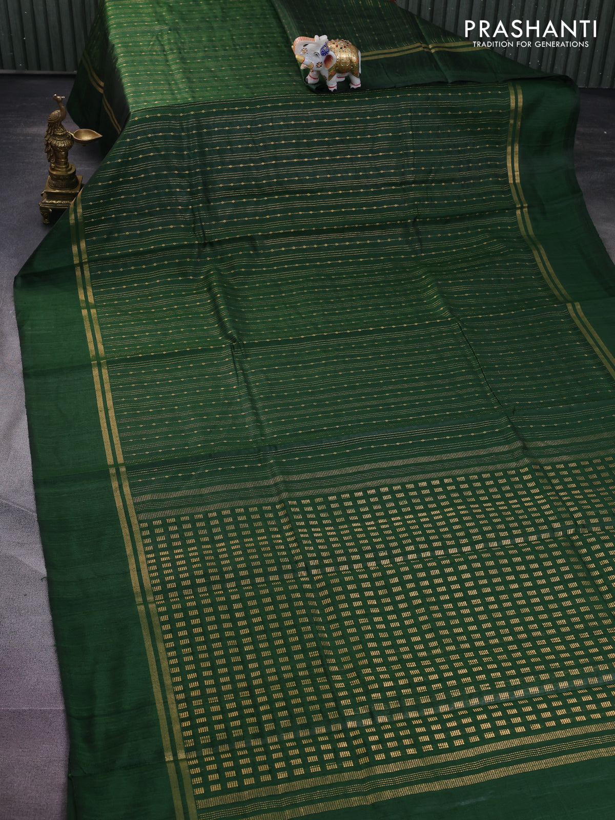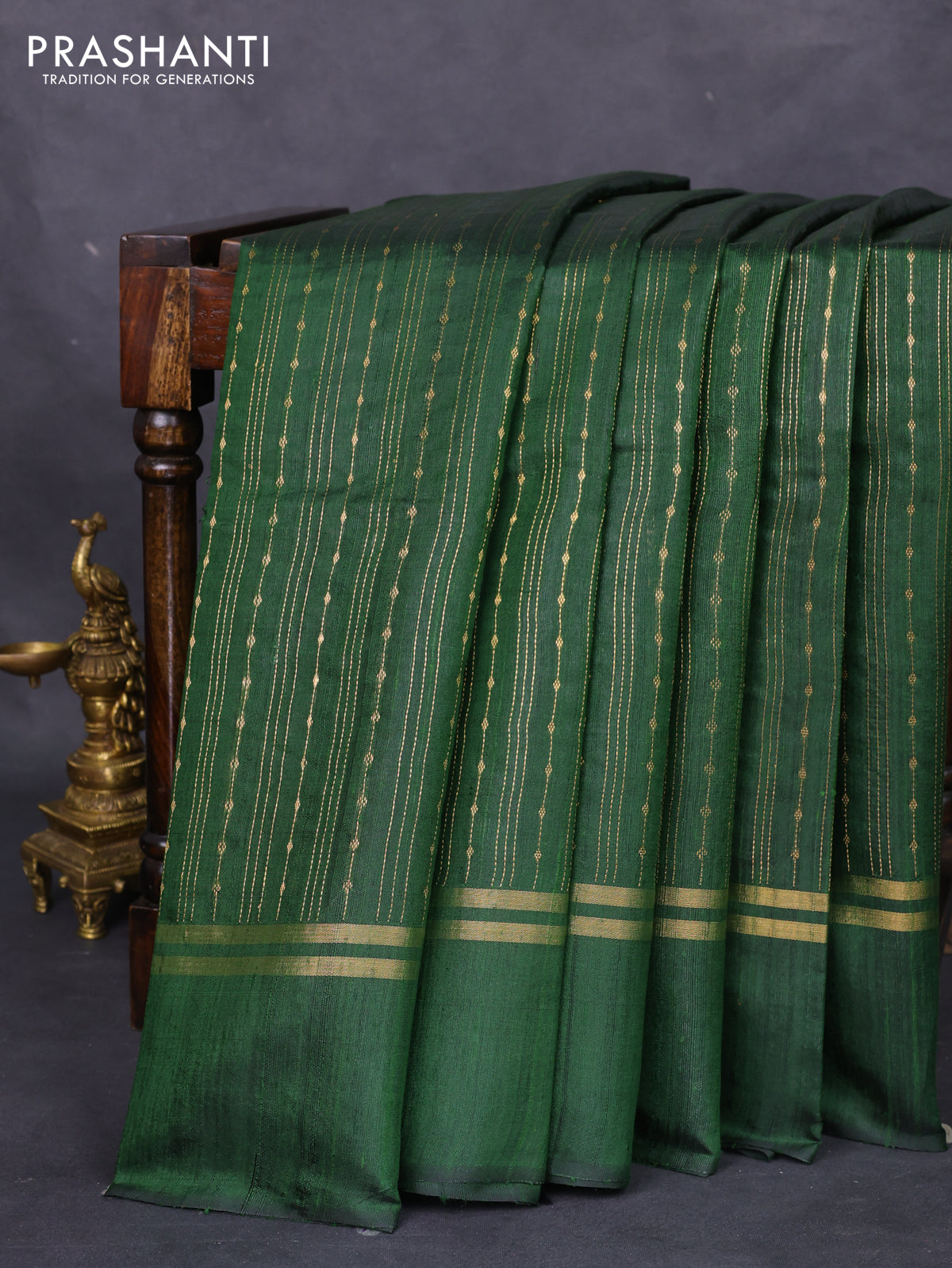 Pure dupion silk saree green with allover zari weaves and zari woven simple border