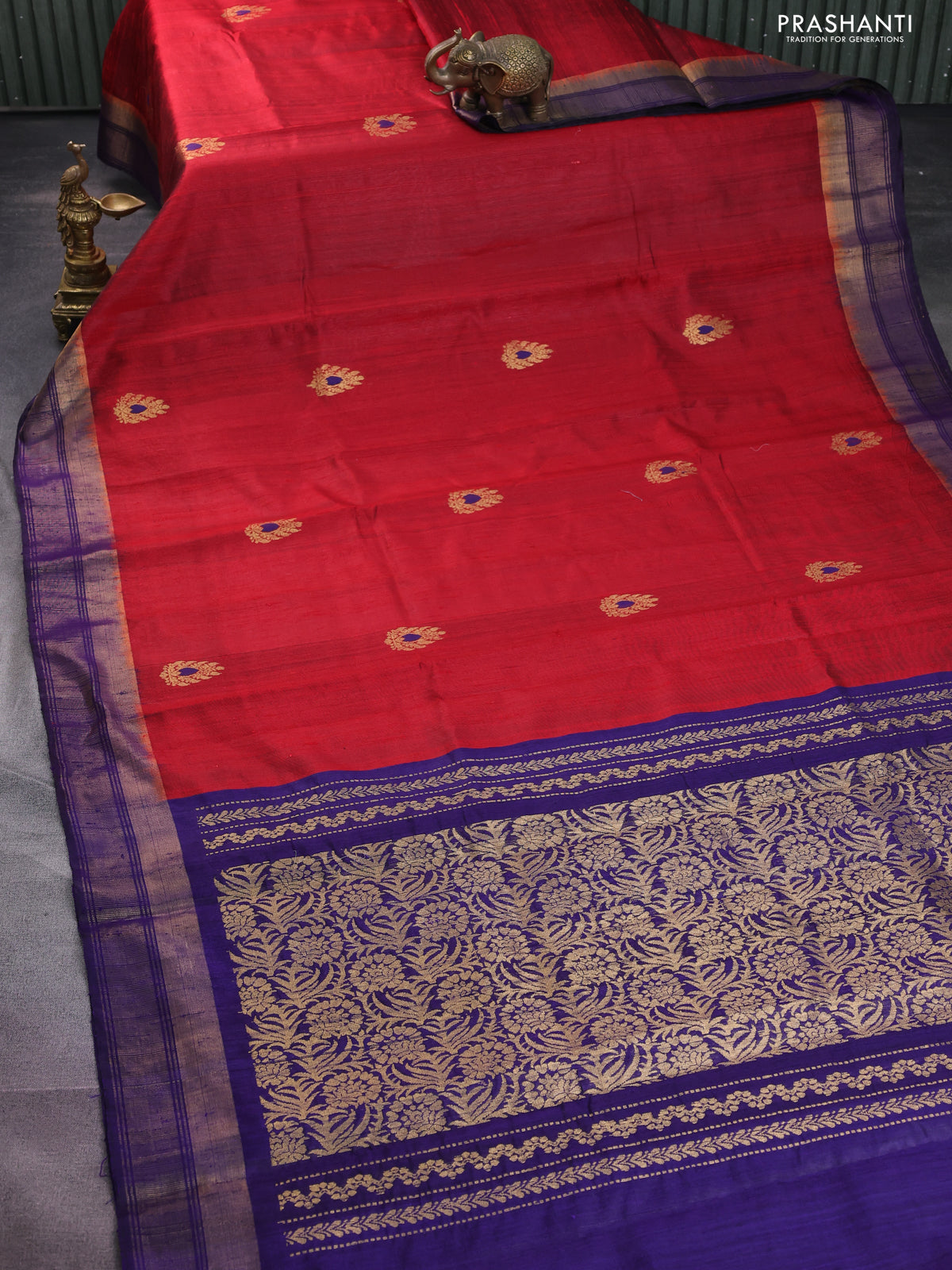 Pure dupion silk saree maroon and violet with zari woven buttas and zari woven border