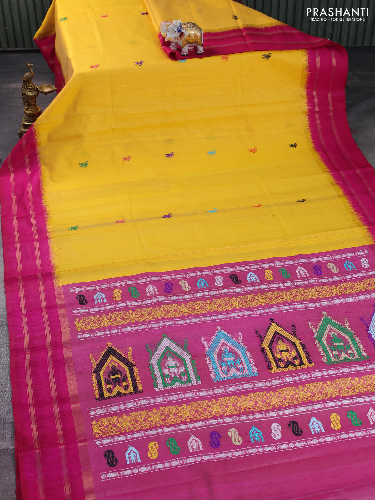 Pure dupion silk saree yellow and pink with thread woven buttas and zari woven border