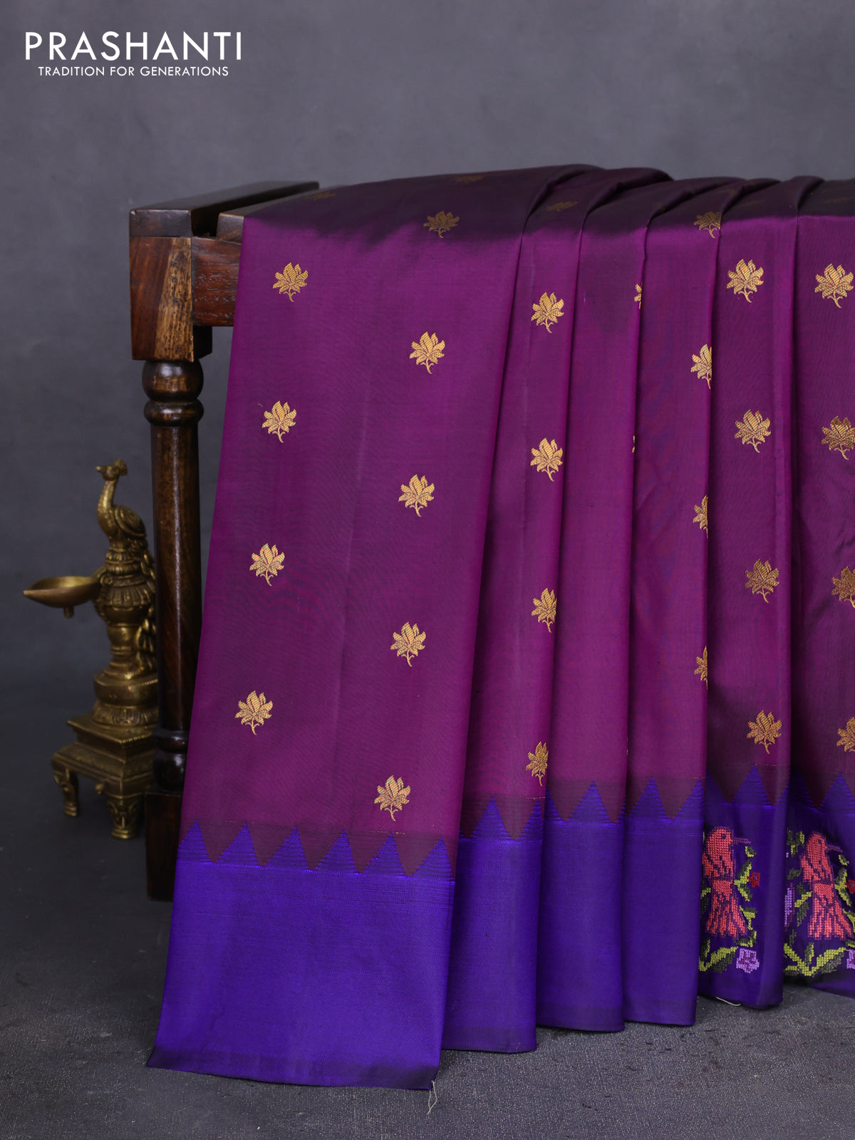 Pure gadwal silk saree deep purple and blue with zari woven buttas and embroided butta border